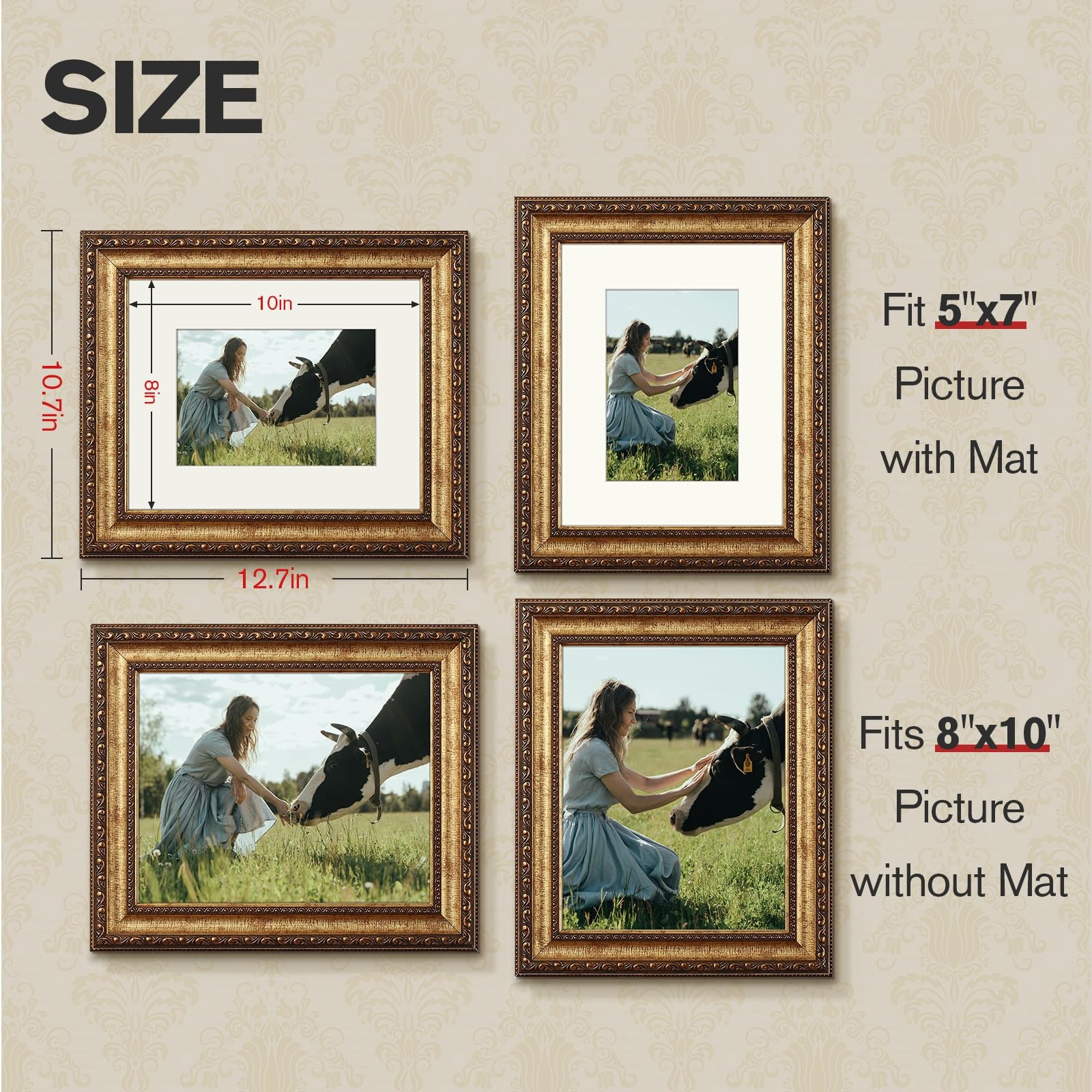 Splinterix 8x10 Gold Ornate Vintage Picture Frame, 2 Pack for Wall or Tabletop