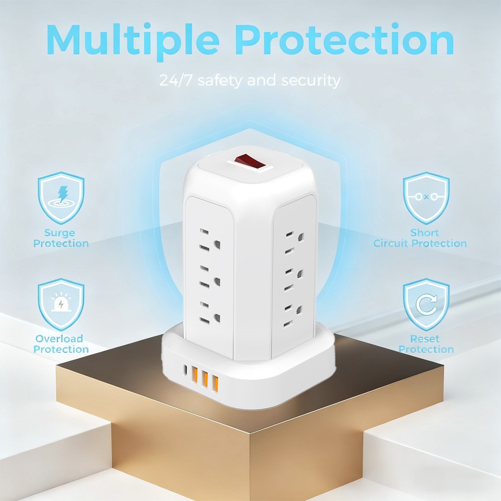 как выглядит 5Ft Surge Protector Power Strip Tower Flat Plug Extension Cord with 16 Outlets фото
