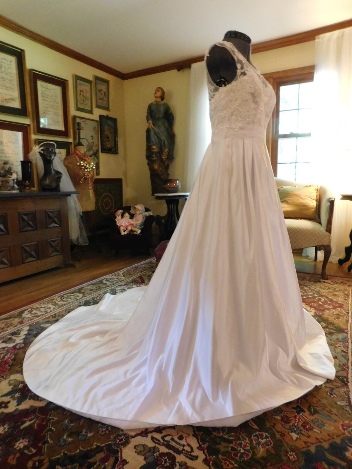 как выглядит "DAVIDS BRIDAL" WHITE LACE SATIN FULL A-LINE WEDDING GOWN S 8 фото