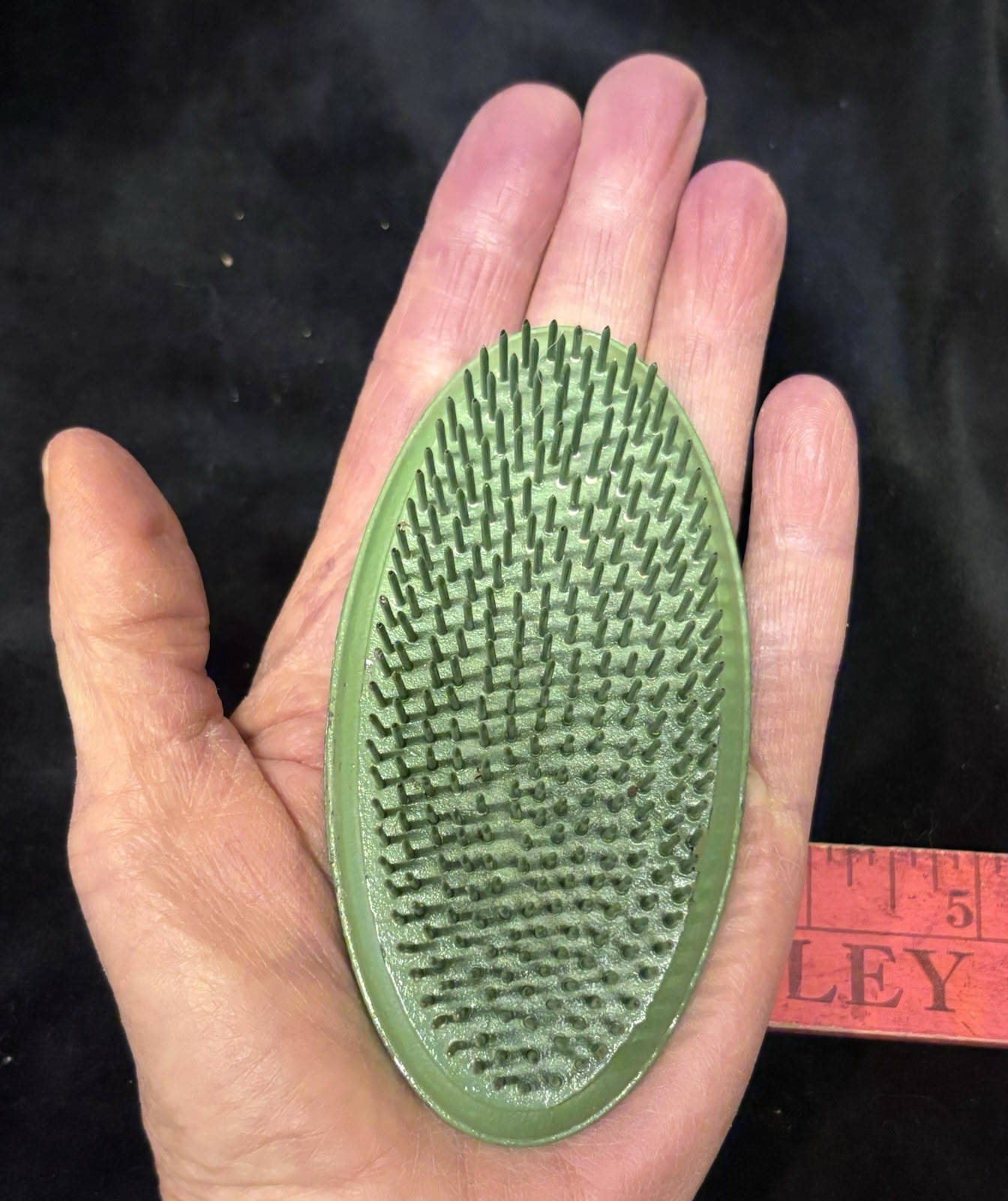 Vintage Metal Flower Frog Floral Holder Oblong Oval Sharp Spike Arrangement Tool