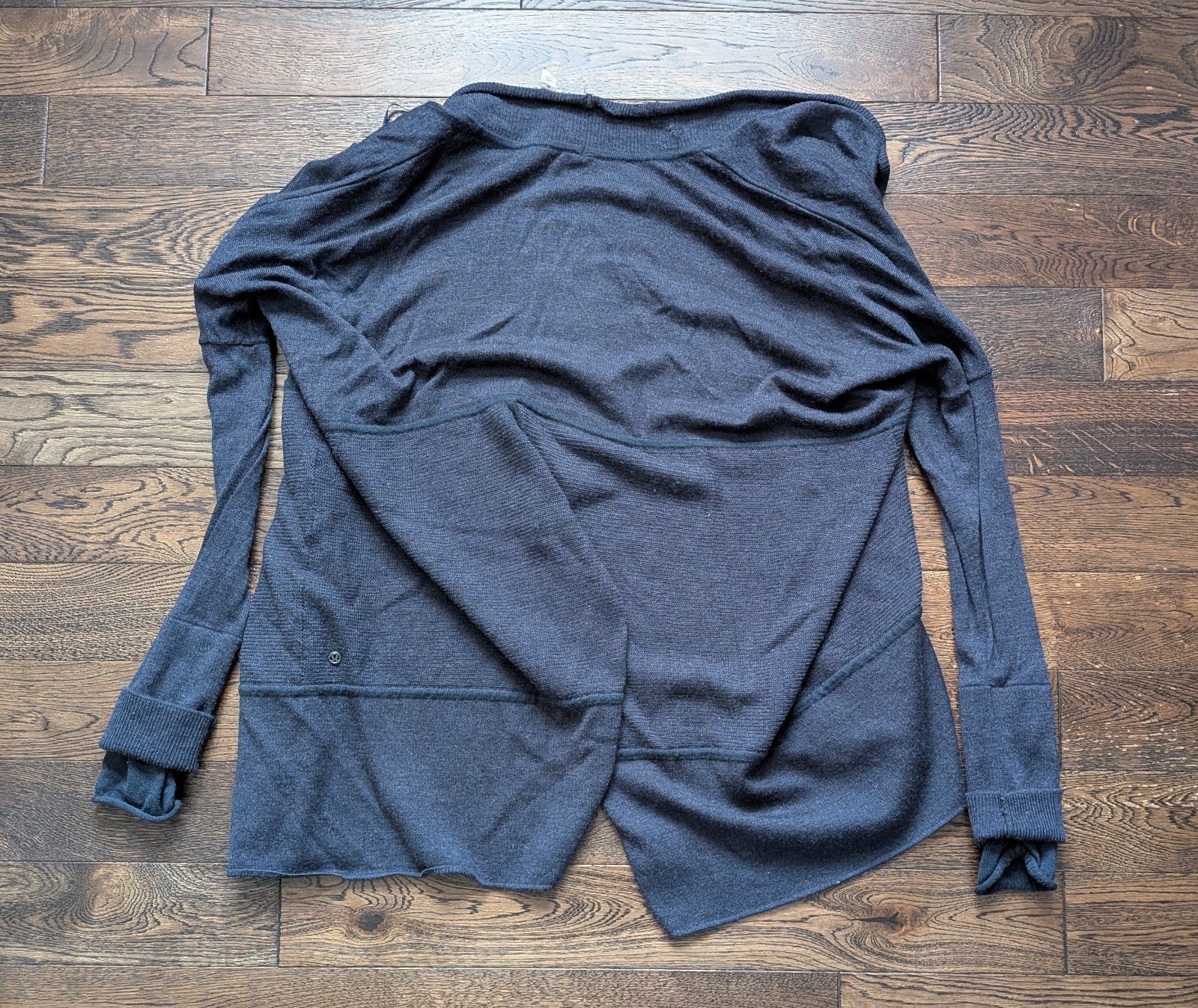 как выглядит Lululemon Merino Wool Sit In Lotus Split Back Navy Blue Cardigan Sweater Size 8 фото