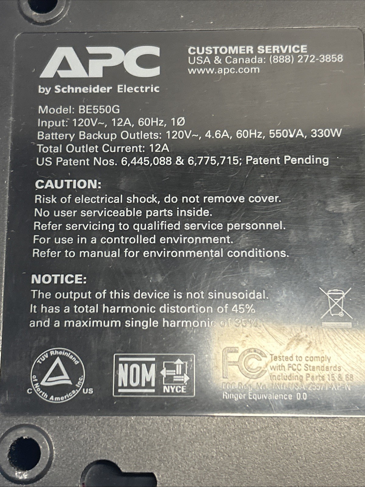 APC BE550G Back-UPS 550 VA 8-outlet Battery Backup Surge Protection - Powers ON