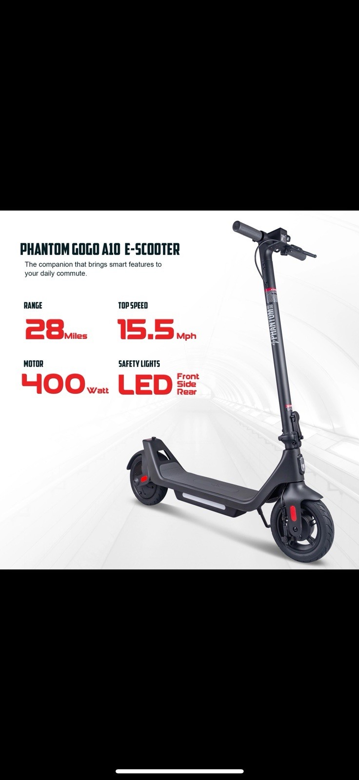 Brand New Phantom Gogo A10 E-Scooter 28 Miles, 15.5 MPH 400