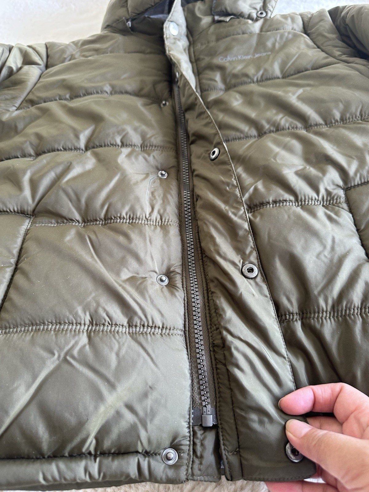 calvin klein olive green hooded puffer winter kids jacket M 10-12