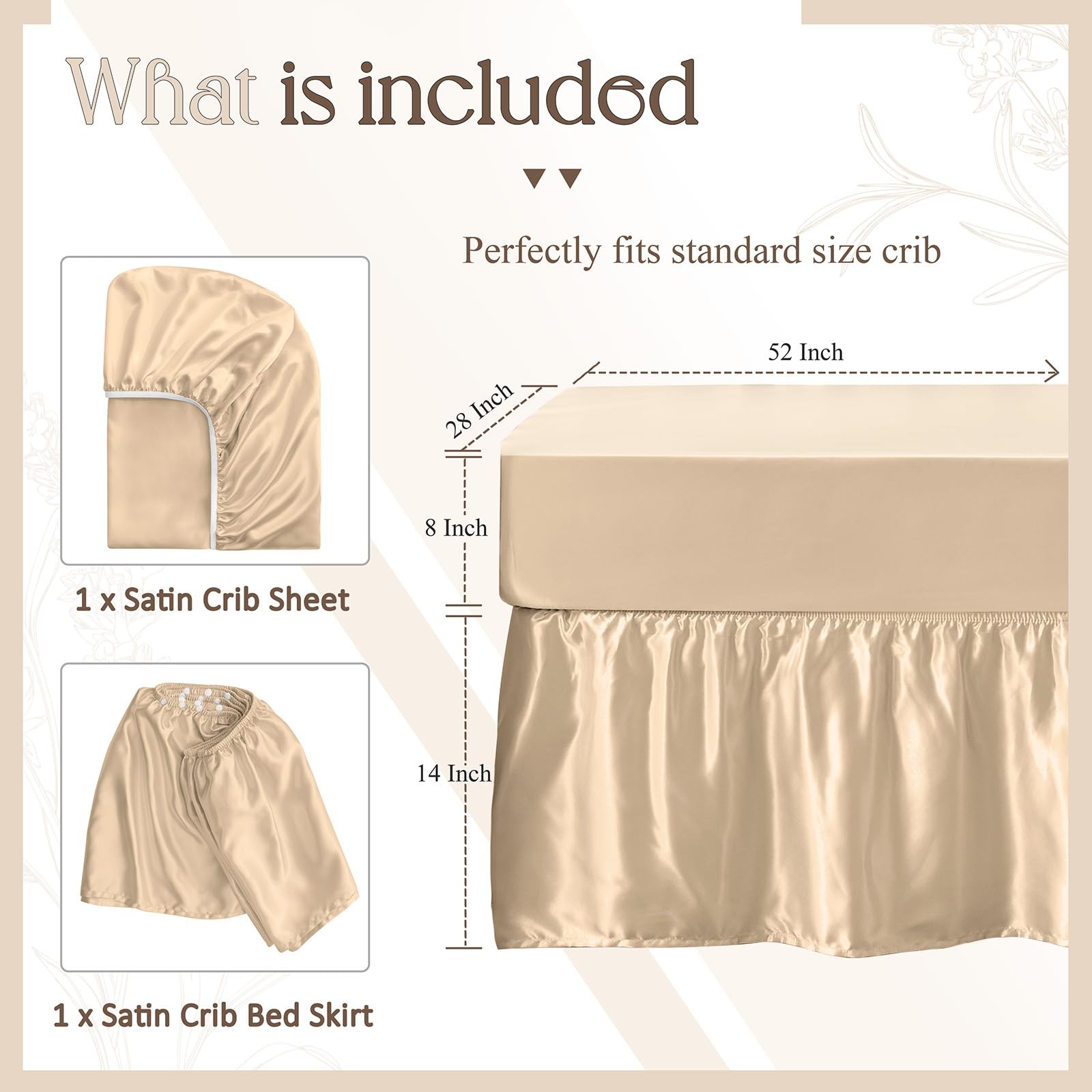 2-Piece Set Satin Crib Sheets Crib Bed Skirt, 52 x 28 Silky Soft Ruffled ...