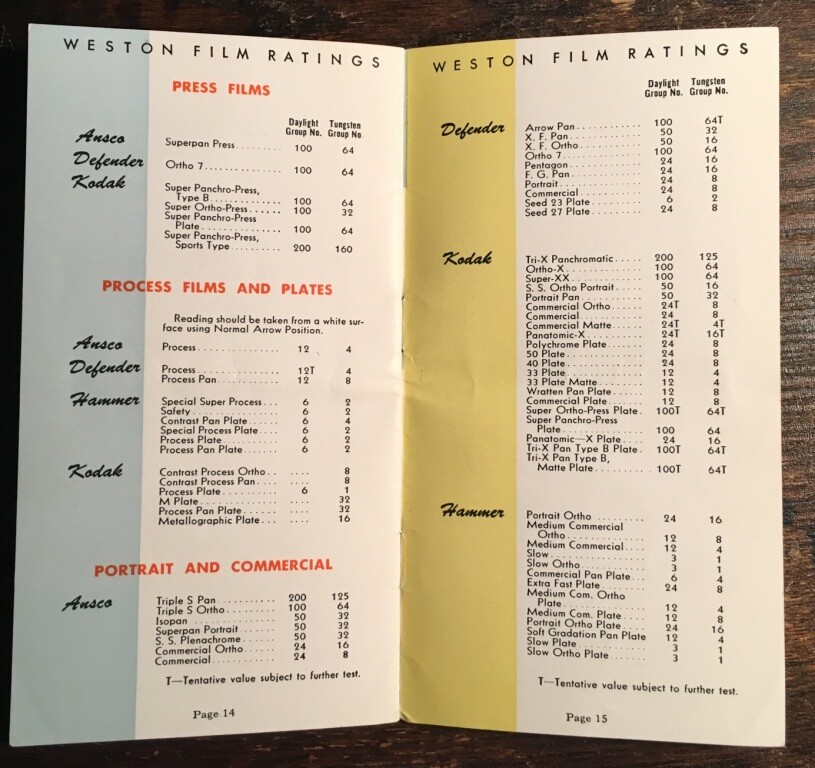 как выглядит 1944 Weston Photographic Products Film Ratings фото