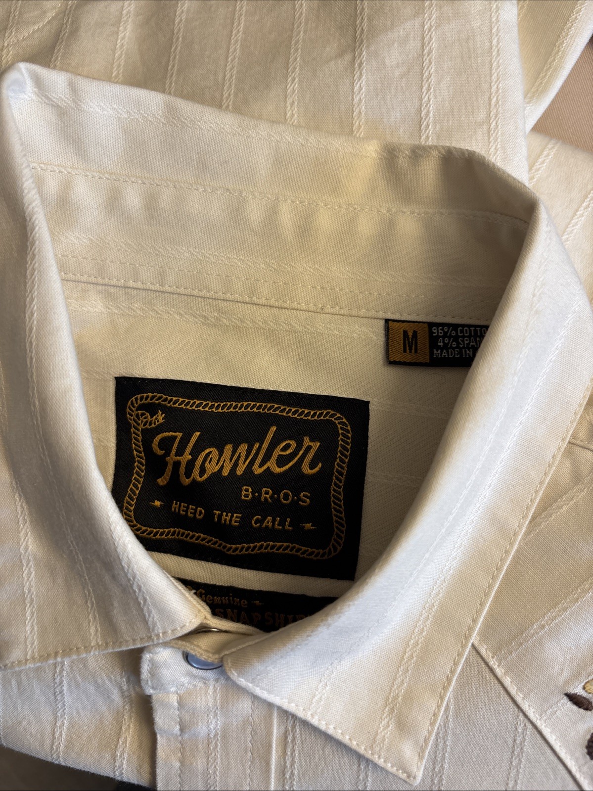 как выглядит NWOT Howler Bros Crosscut Deluxe Snapshirt Medium M Flower Power Off White фото
