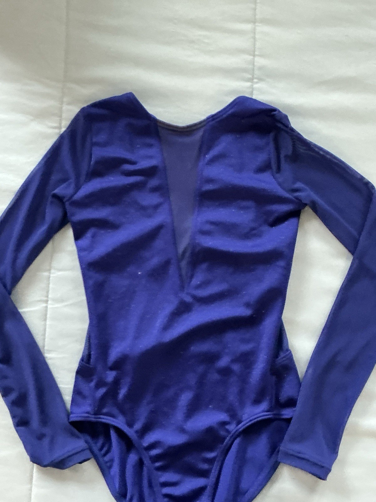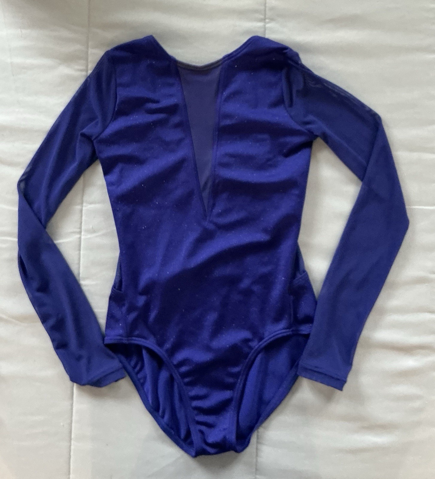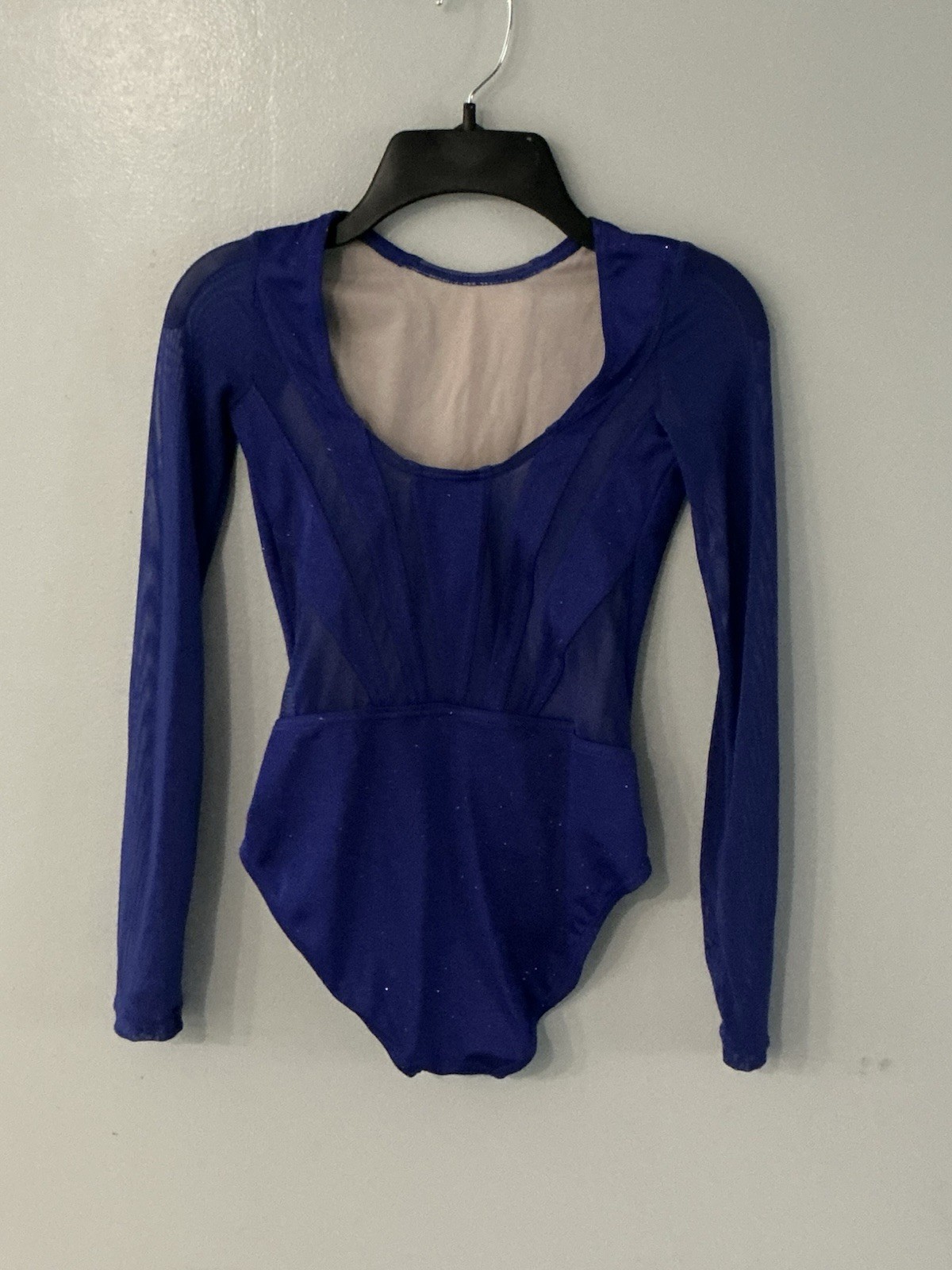 Balera Girls' Sparkly Navy Blue Leotard Size MC Dance Gymnastics See Through LS