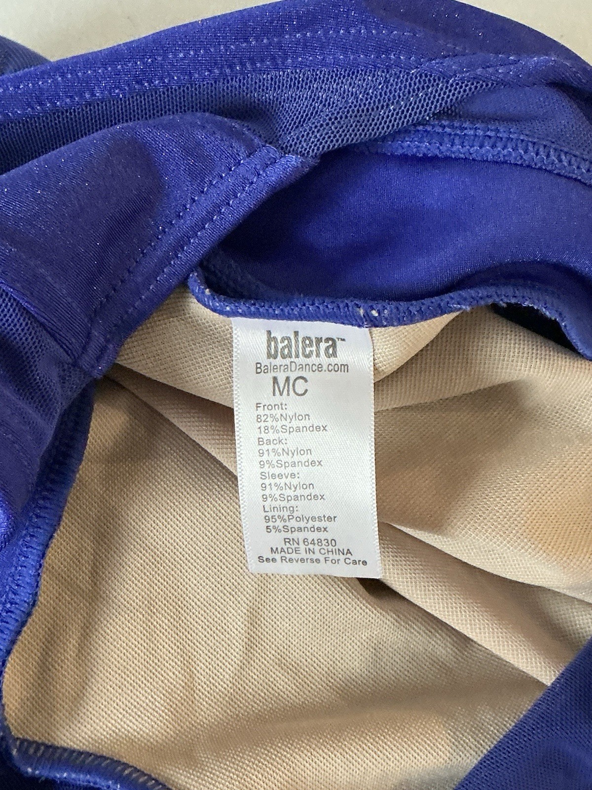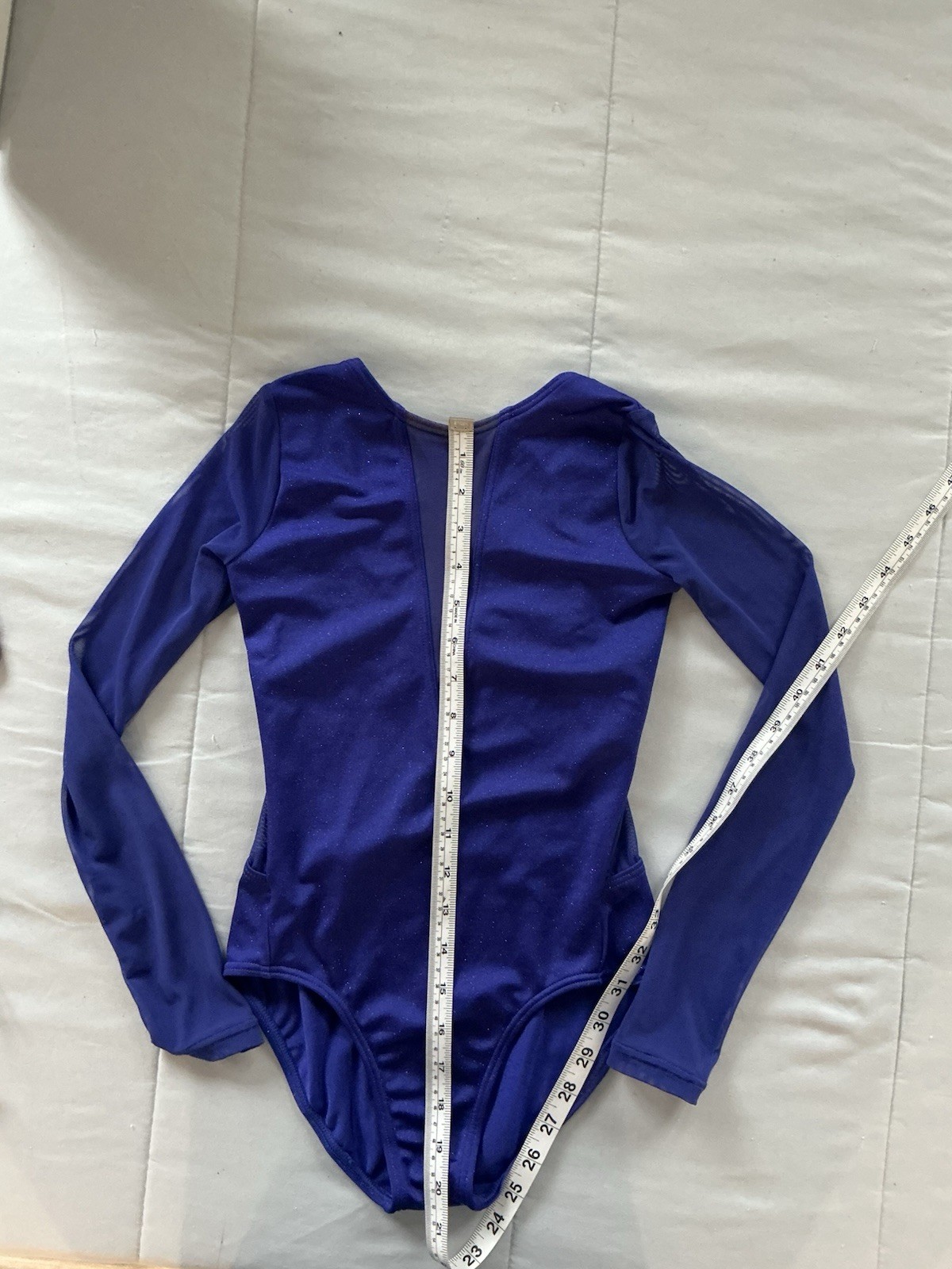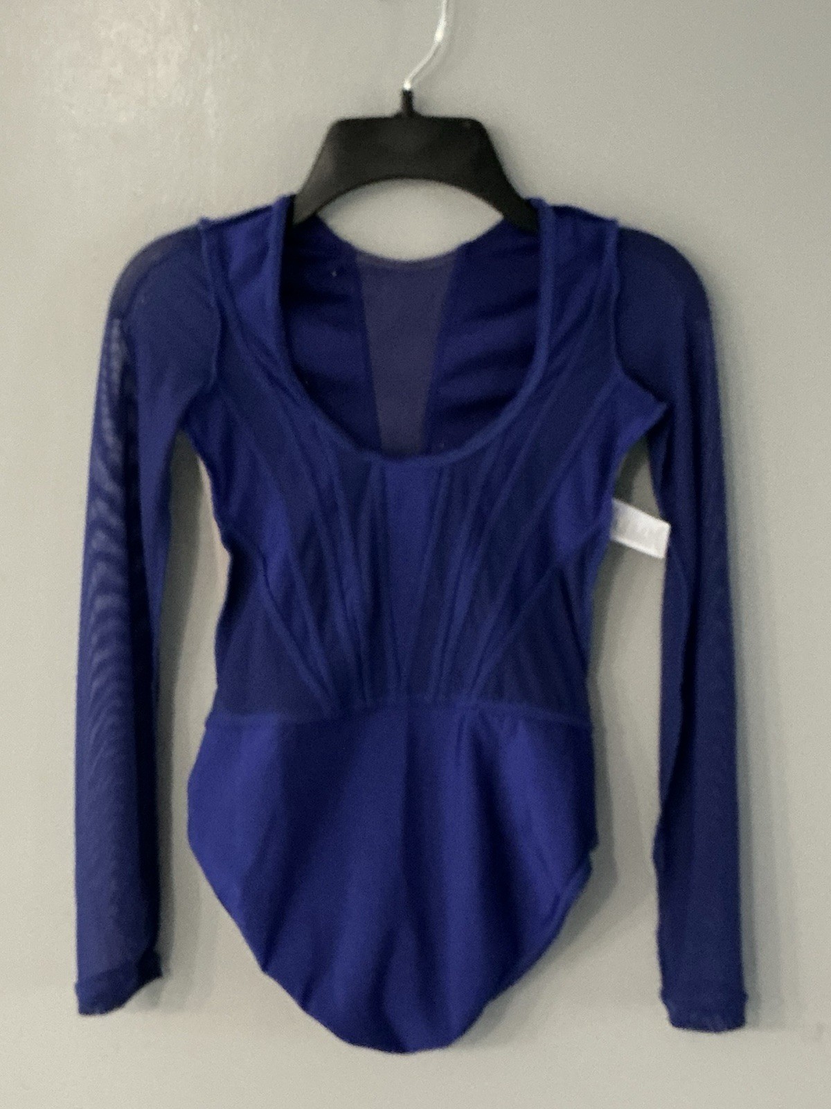 Balera Girls' Sparkly Navy Blue Leotard Size MC Dance Gymnastics See Through LS
