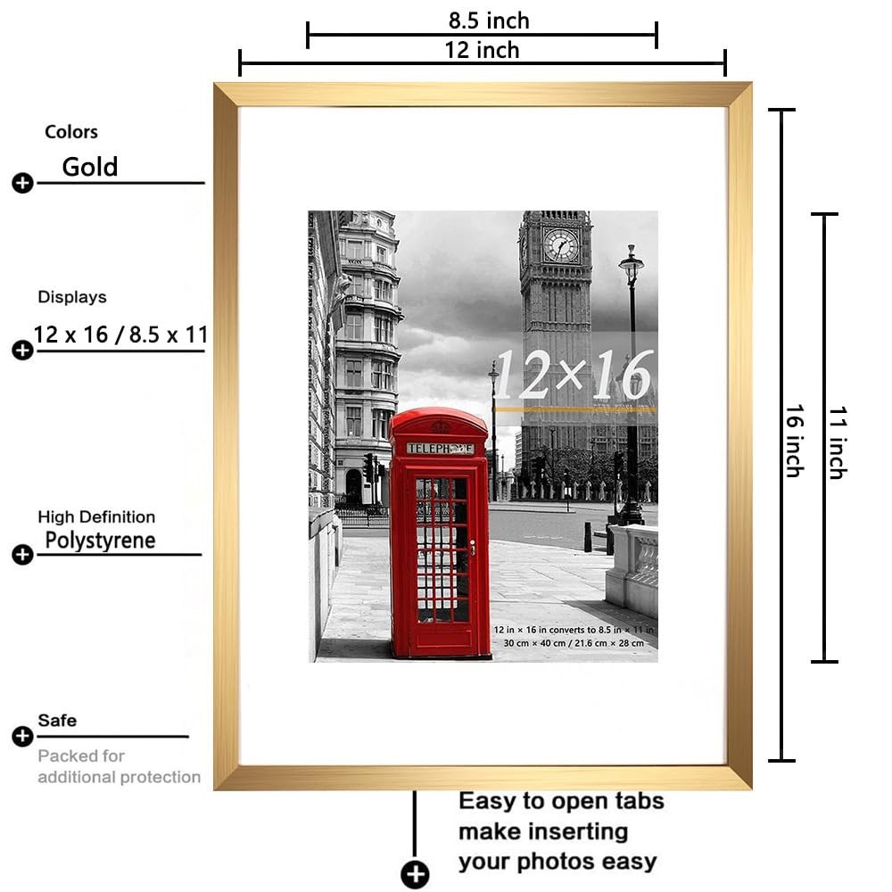 Hogaryo 3-Pack 12x16 Gold Picture Frames for 8.5x11 Photos - Wall/Table Mount