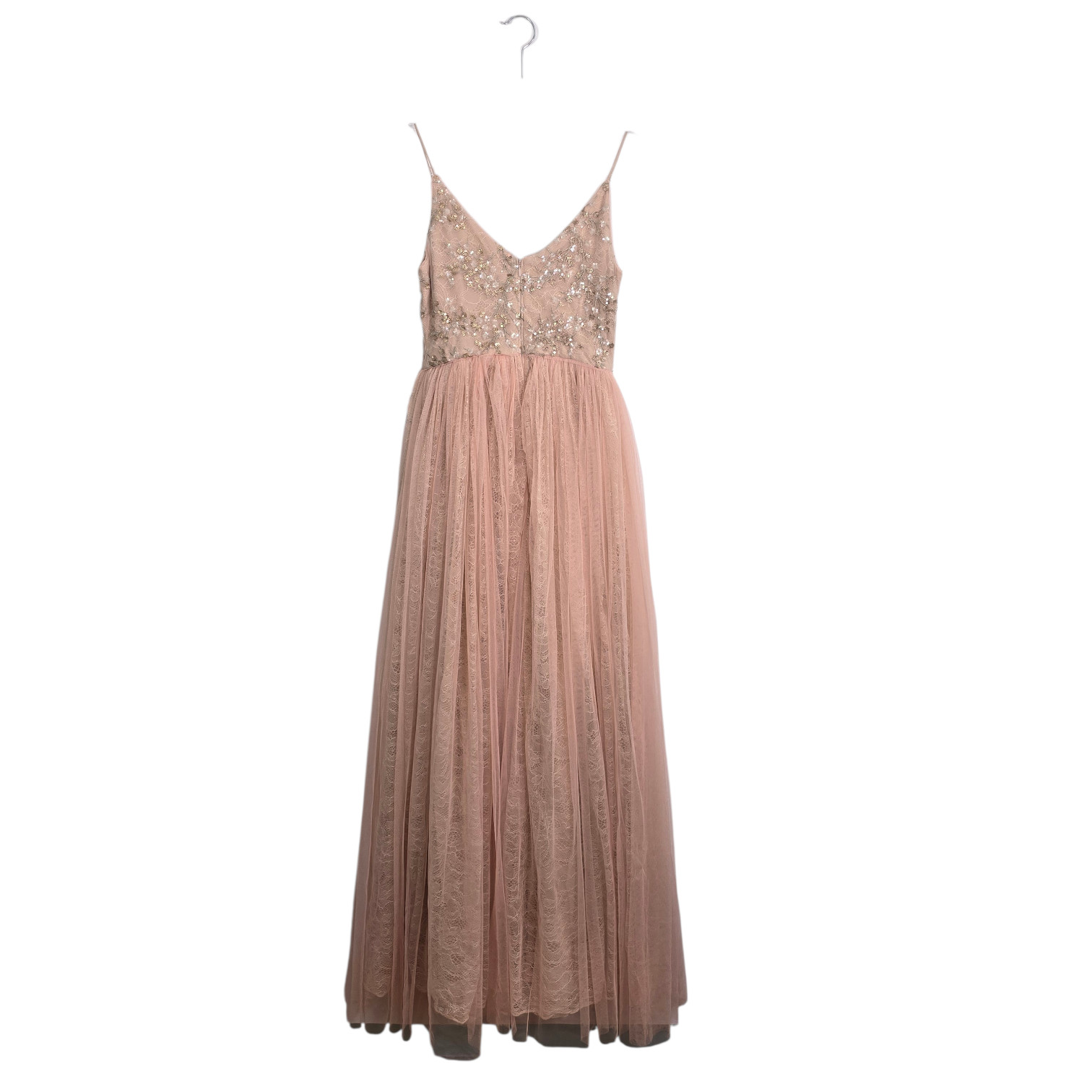 Adrianna Papell Spaghetti Strap Tulle Sequin Lace Maxi Dress Gown NWT Size 2