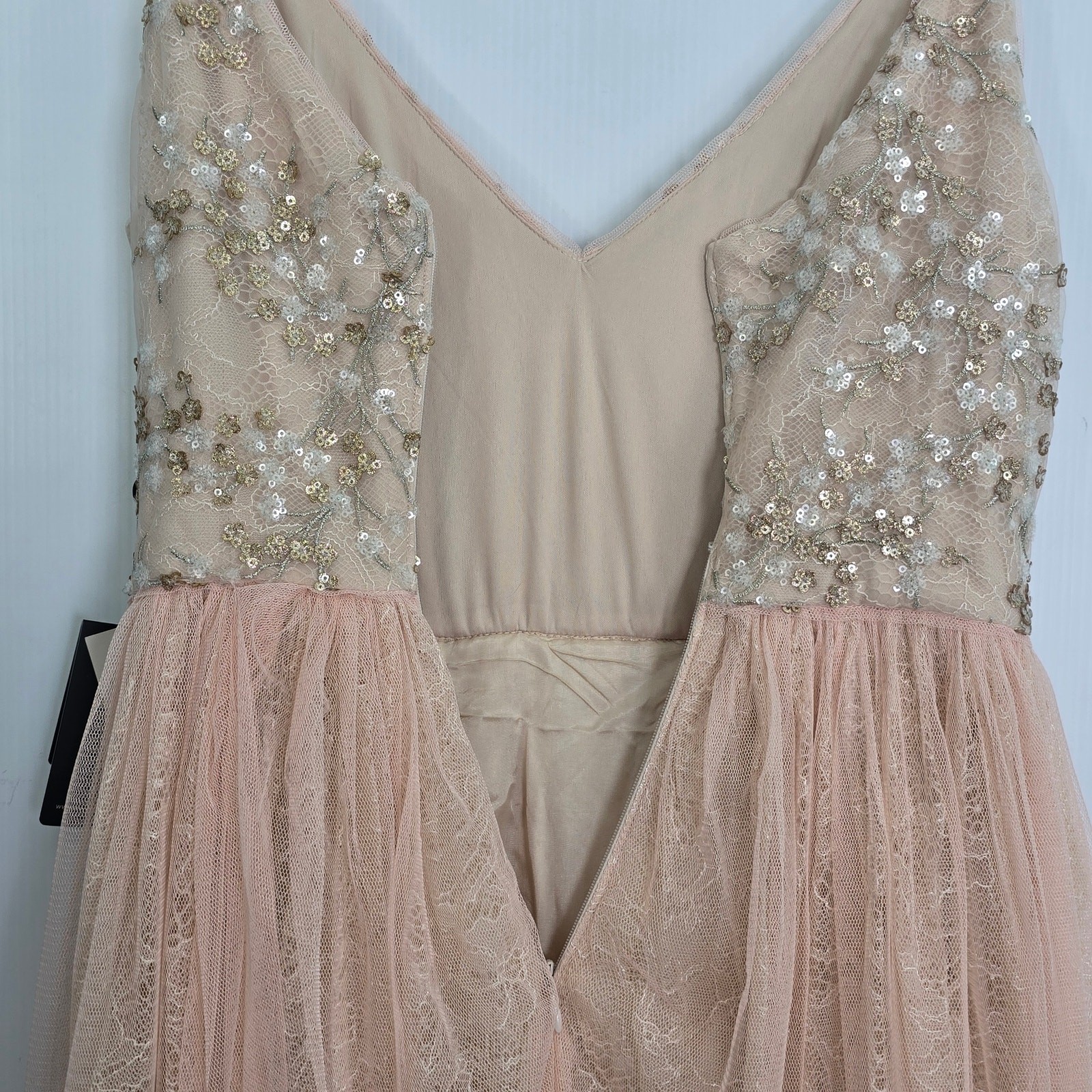 как выглядит Adrianna Papell Spaghetti Strap Tulle Sequin Lace Maxi Dress Gown NWT Size 2 фото