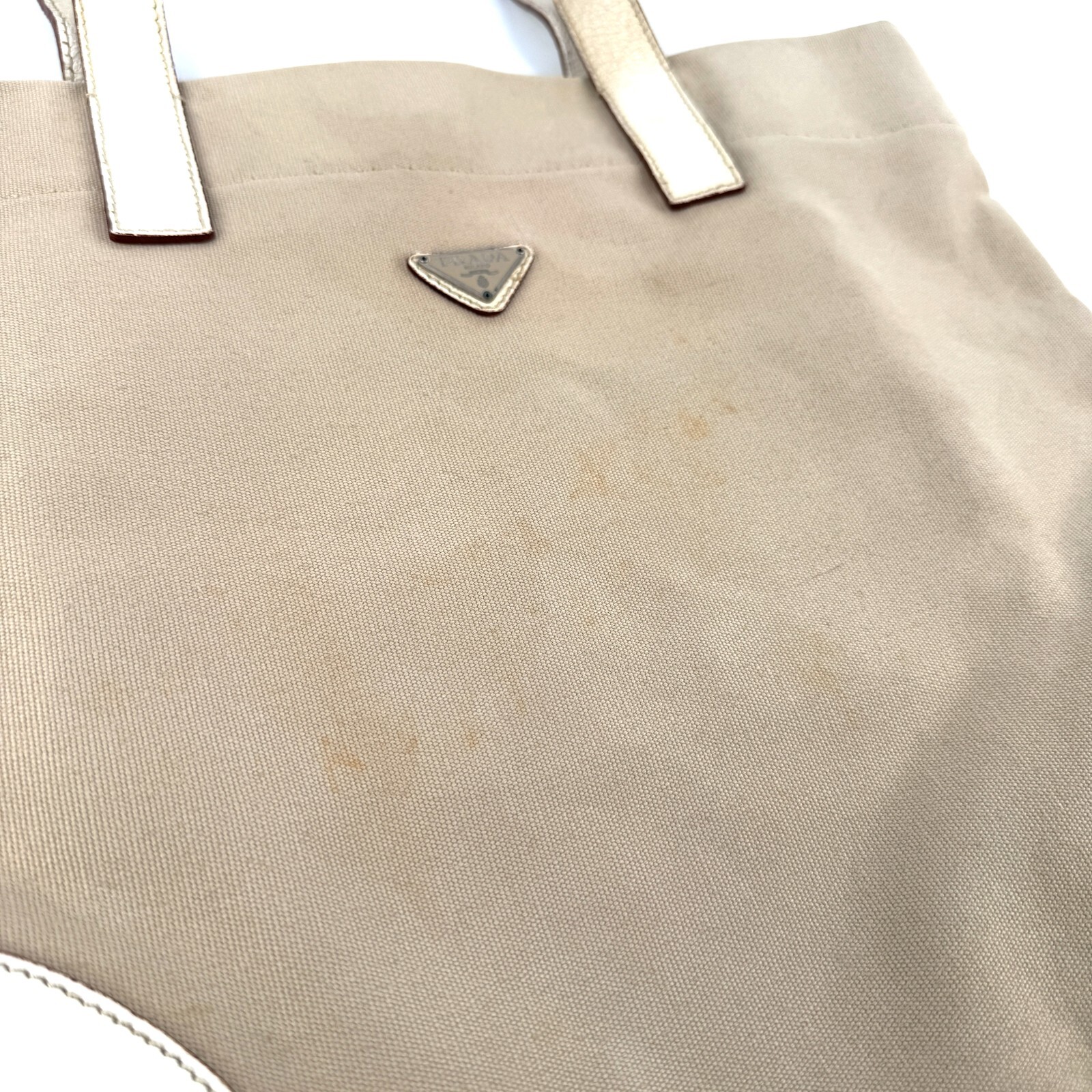 PRADA Tote Hand Bag Canvas Beige Authentic F05-0214