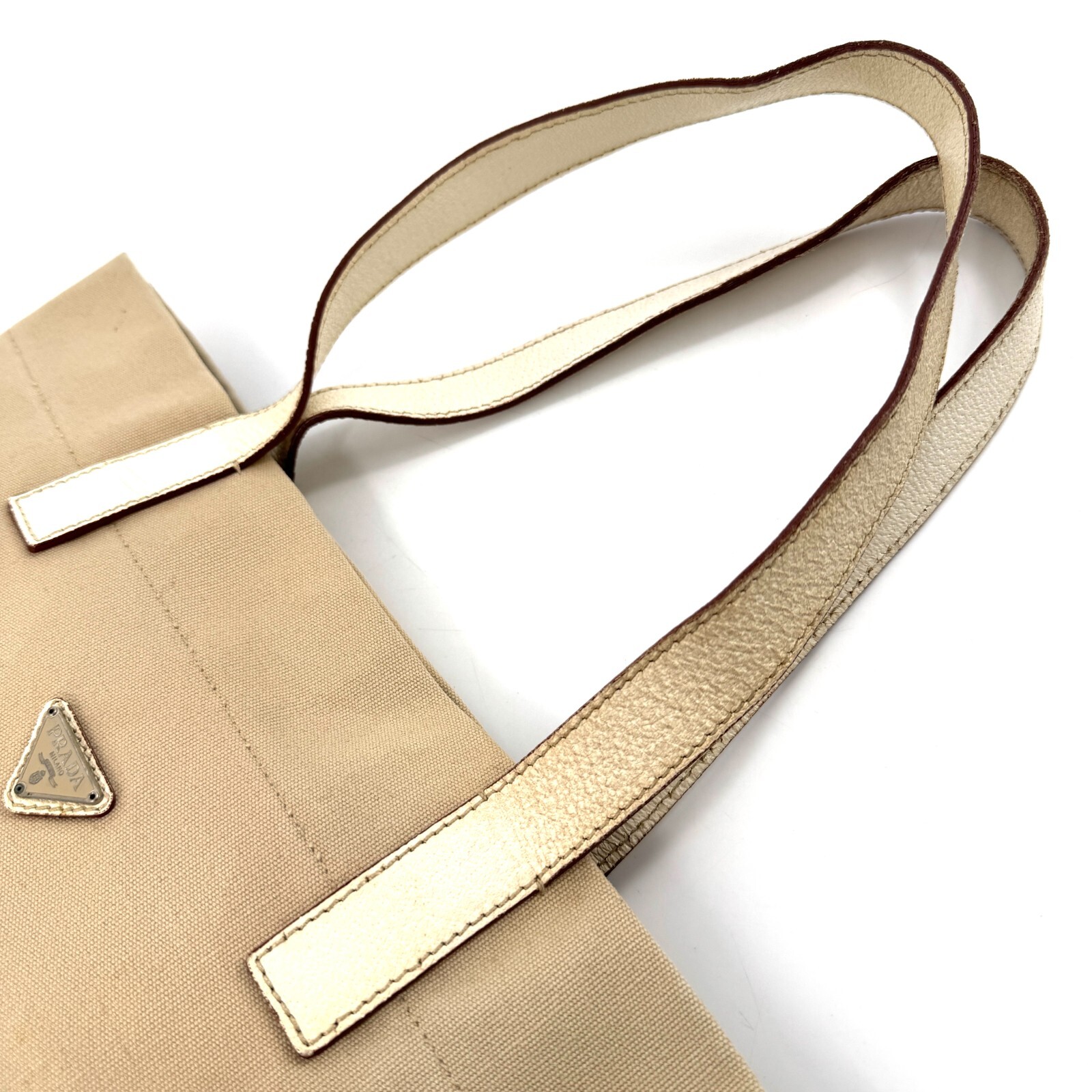 как выглядит PRADA Tote Hand Bag Canvas Beige Authentic F05-0214 фото