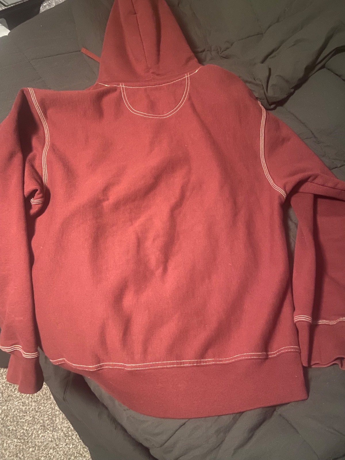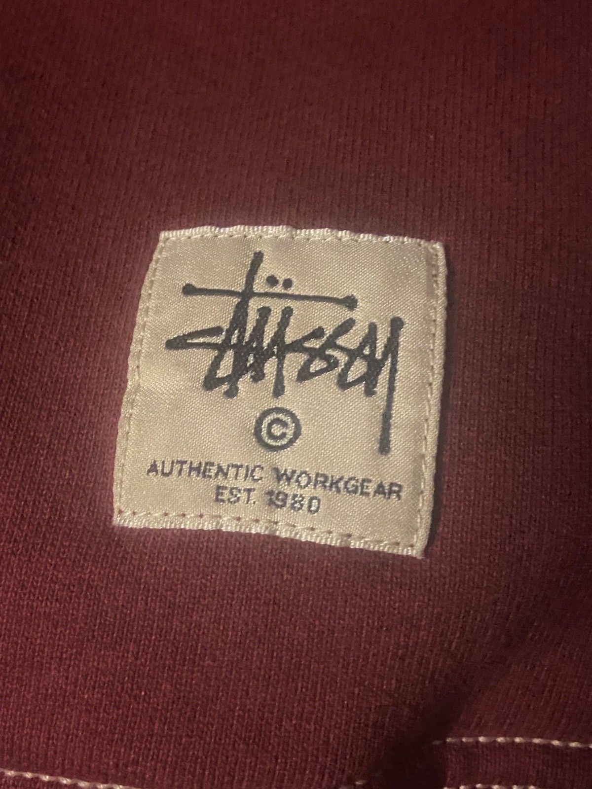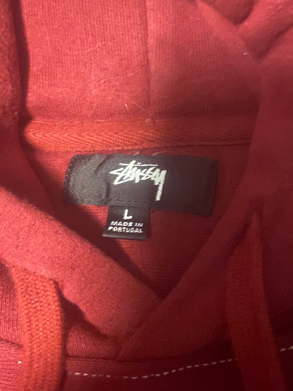 как выглядит Stussy Contrast Stitch Label Hoodie Mens L Dark Red / Maroon Workgear фото