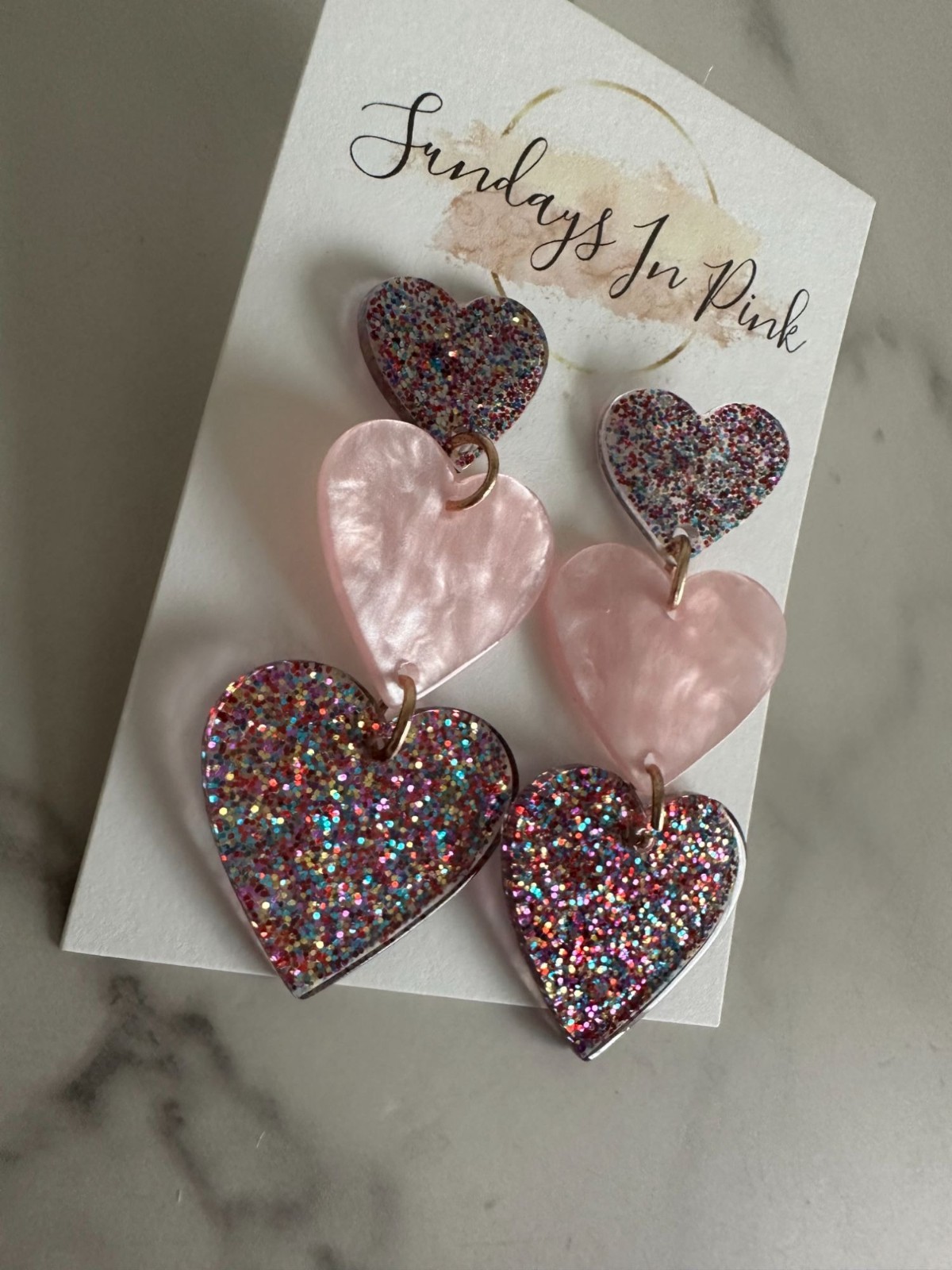HEART Glitter Valentine Pink Drop Earrings NEW