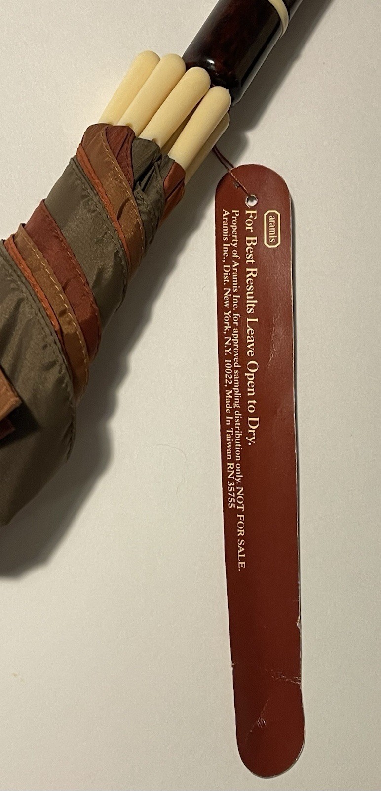 Vintage Aramis Signature Umbrella Wooden Hook Cane Handle Brown NOS
