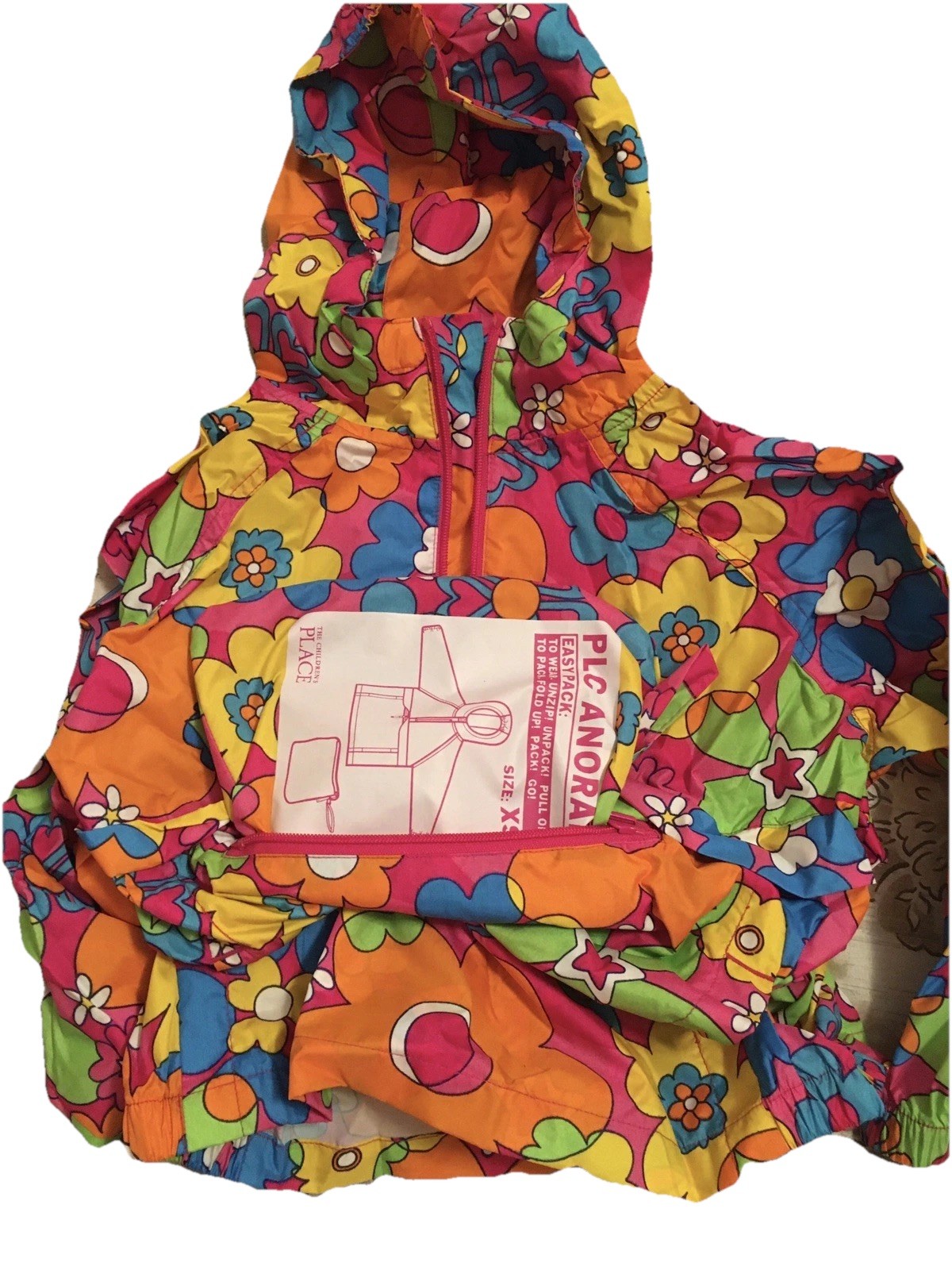 Childrens Place Anorak Windbreaker Jacket Girls Size XS Vibrant Floral Pattern