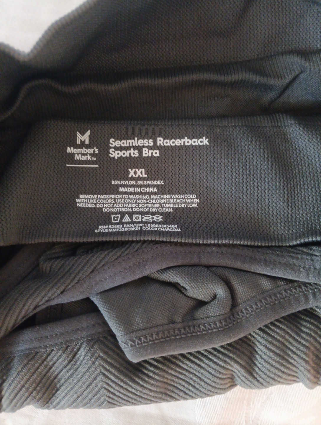 Member's Mark Seamless Racerback Sports Bra Size XXL 2 Pack Grey Pink