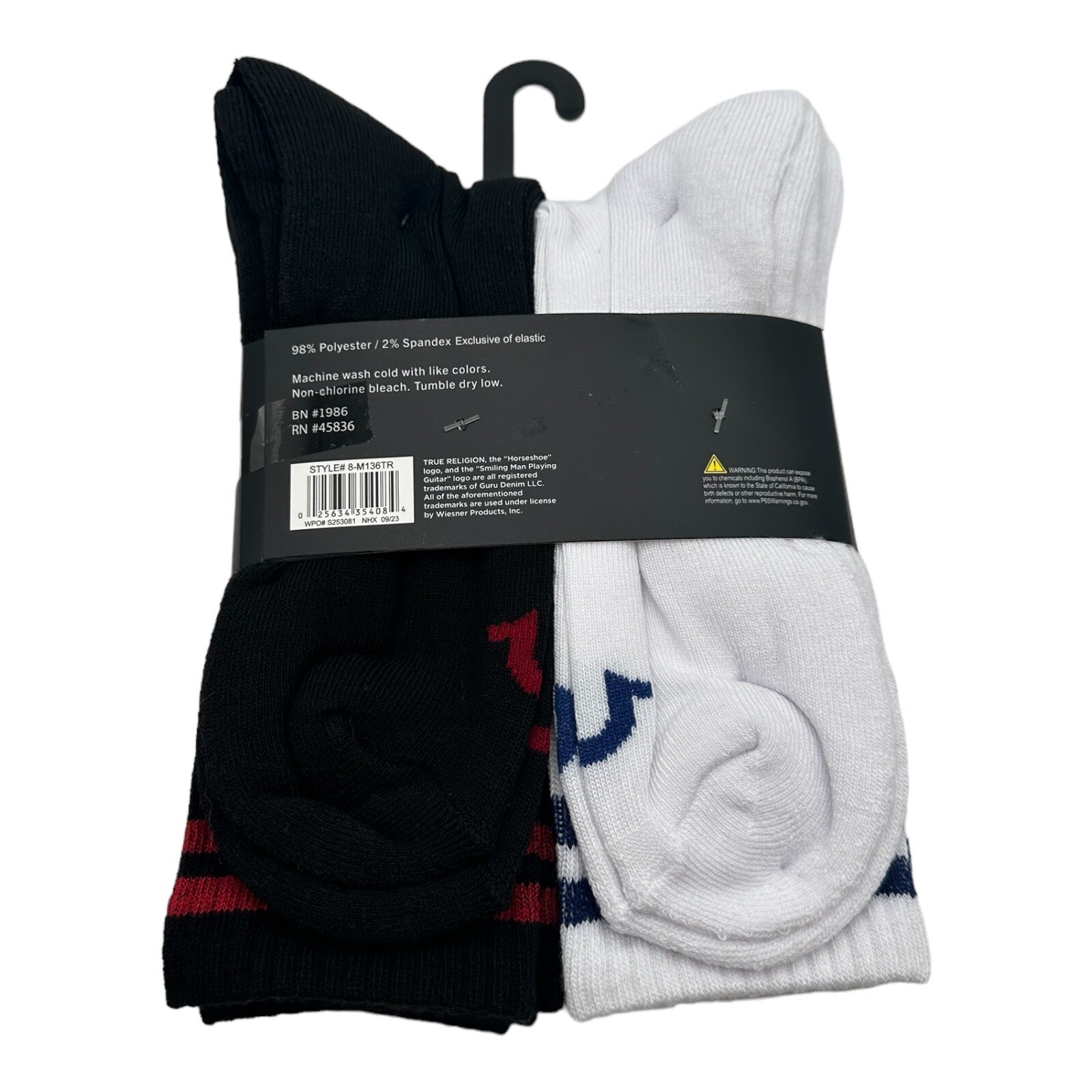 True Religion Mens 8 Pack Half Cushion Crew Socks Shoe Sz 8-12.5 Black White NEW