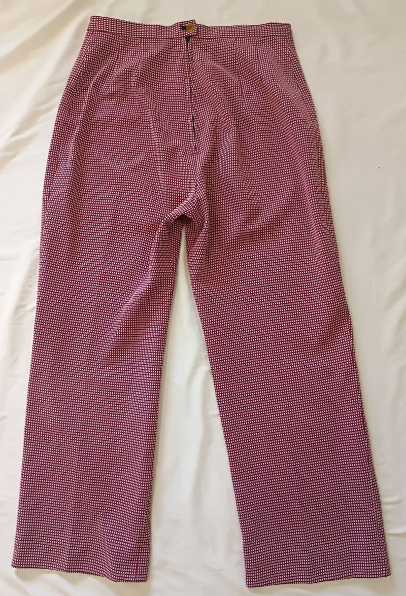 как выглядит Vintage 1970s Homemade Red Blue Plaid Polyester Wide Leg Pants 32x28 фото