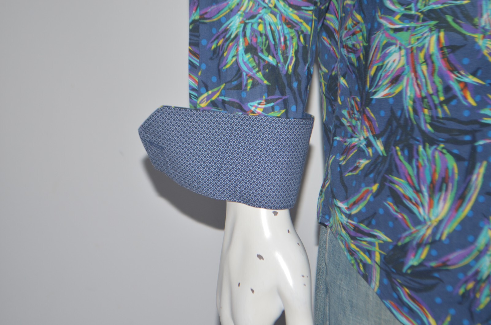 как выглядит Mint BUGATCHI Classic Fit Floral Lightweight Cotton Navy Green Casual Shirt Sz M фото