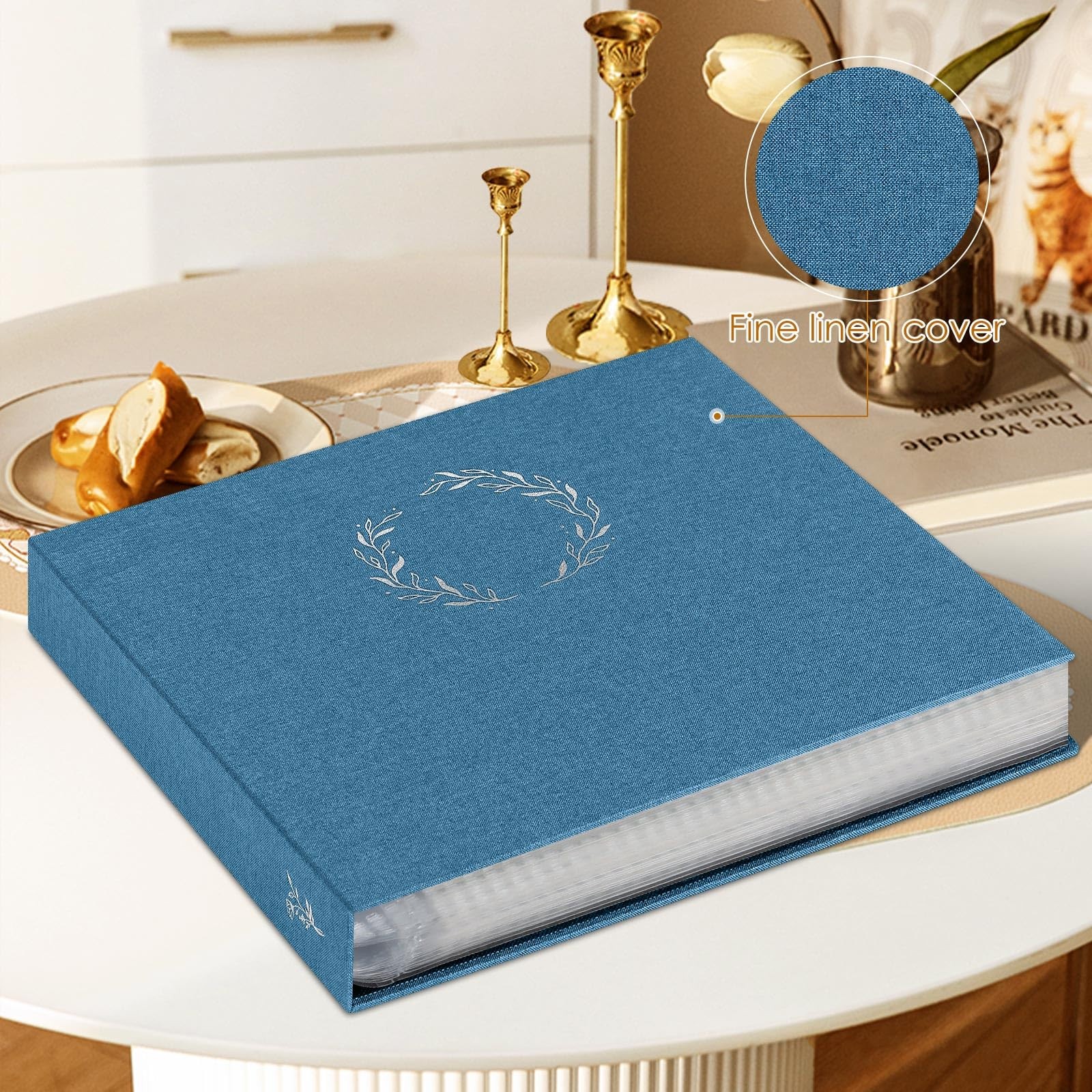 как выглядит Lanpn 12x12 Photo Album Scrapbook - Linen Cover Wreath Design, 3-Ring, 60 Pages фото