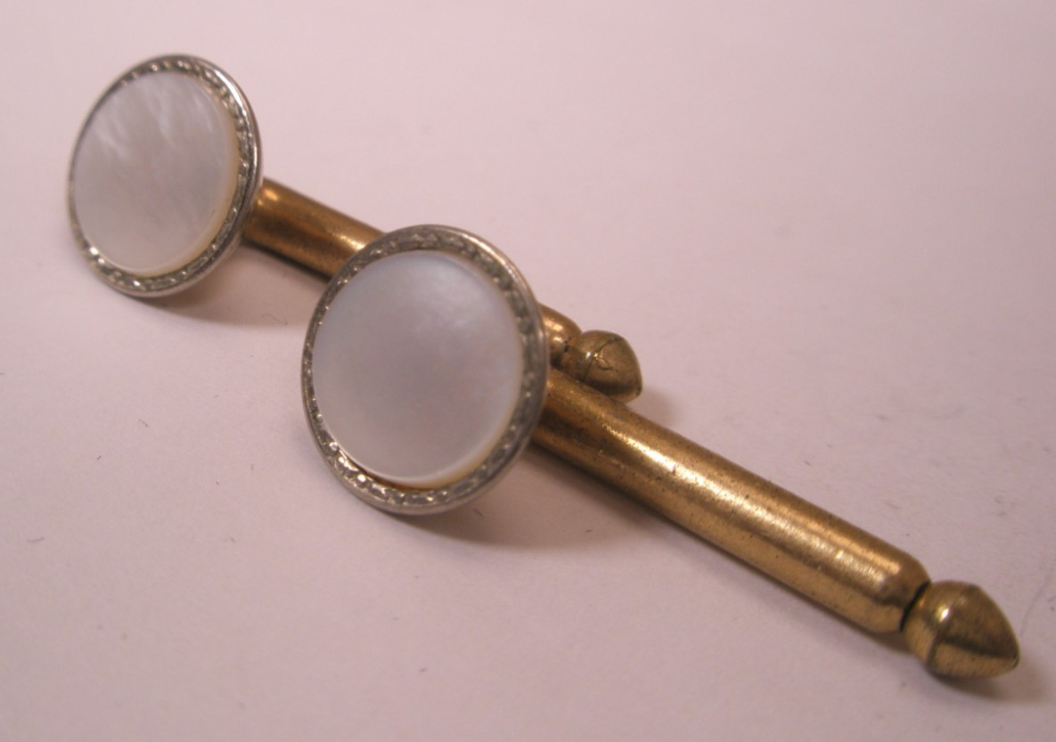 как выглядит SINGLES 2 5/16" White MOP Round Vintage SWANK Formal Tux Prom Shirt Stud a247 фото
