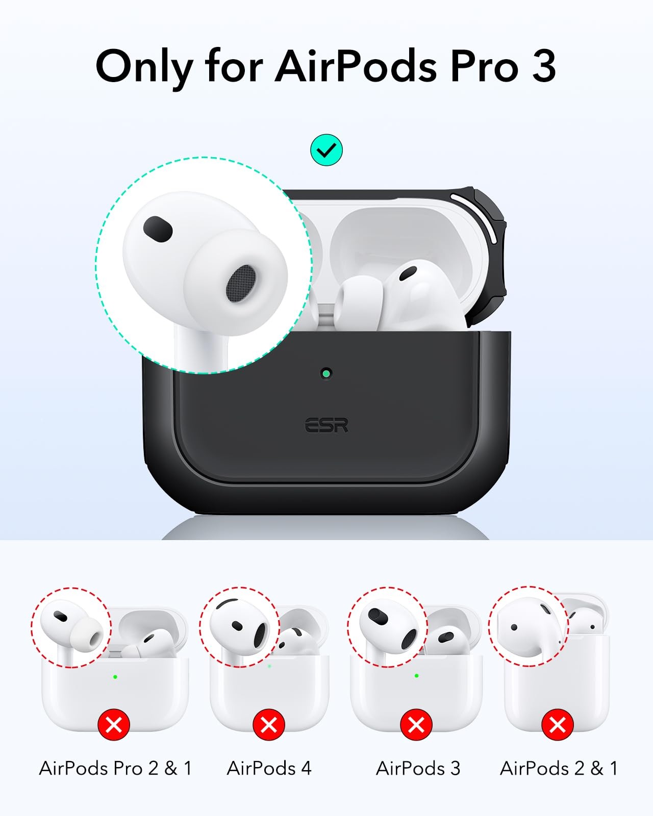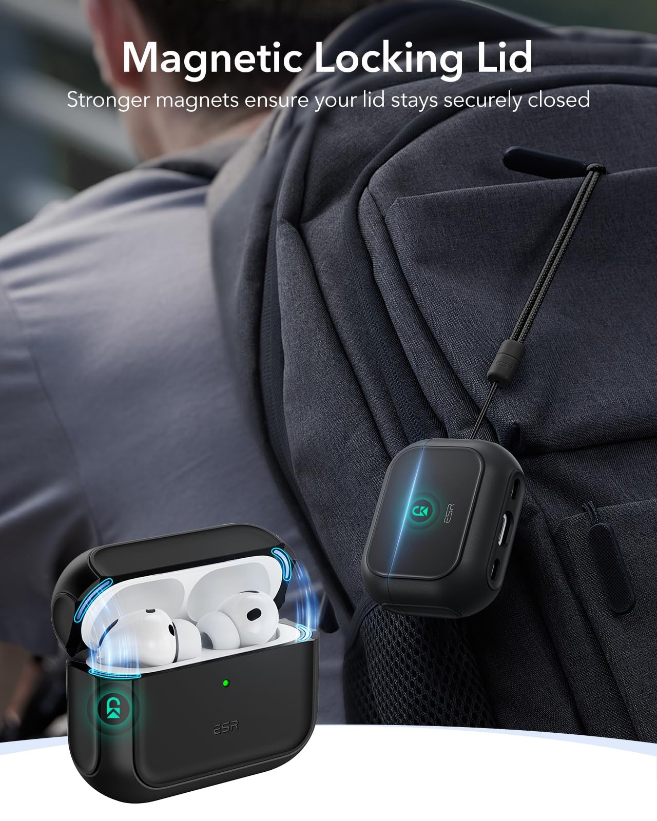 ESR AirPods Pro 3 Case MagSafe Hard Cover, Drop Protection Black w/Lanyard