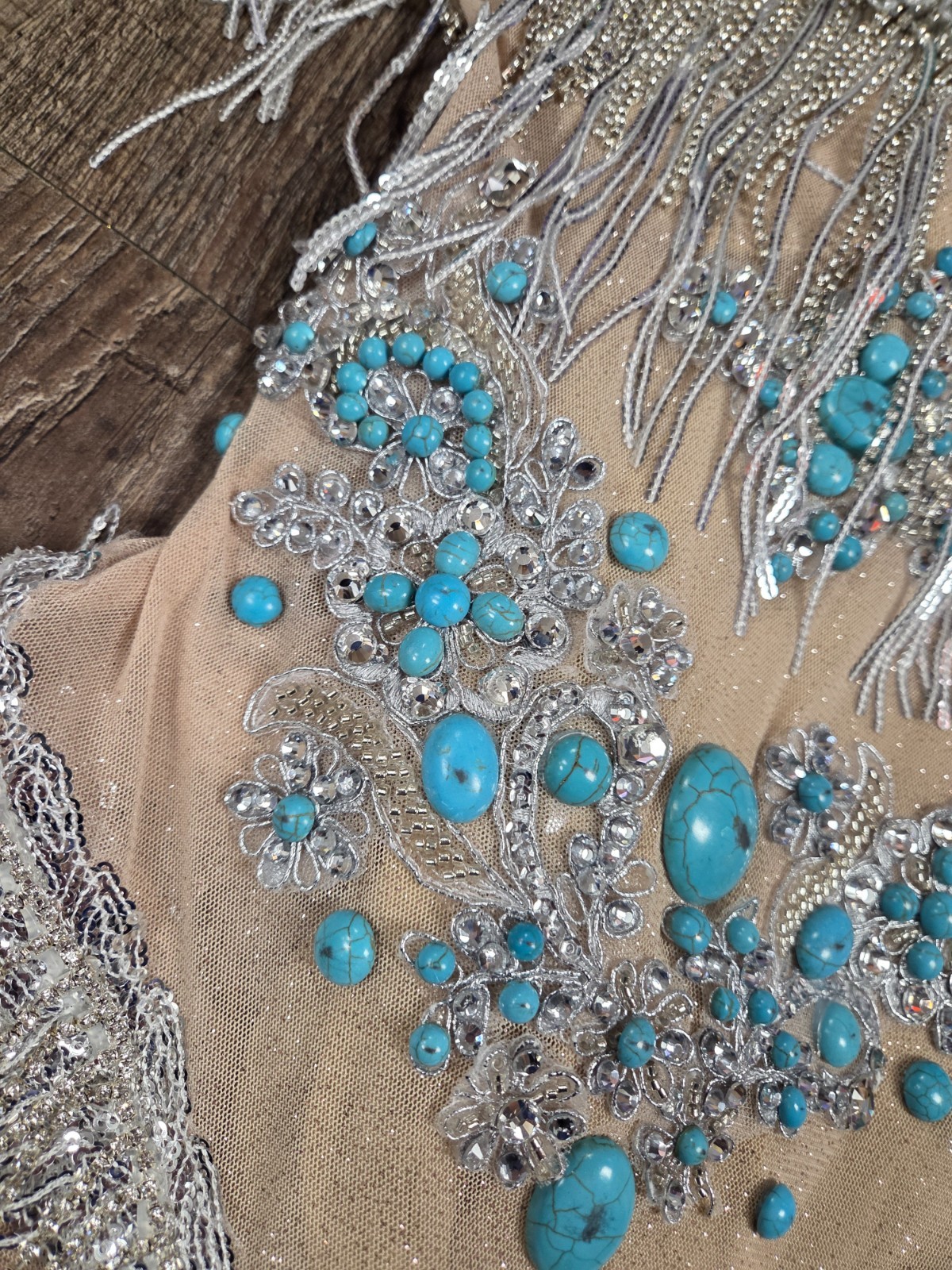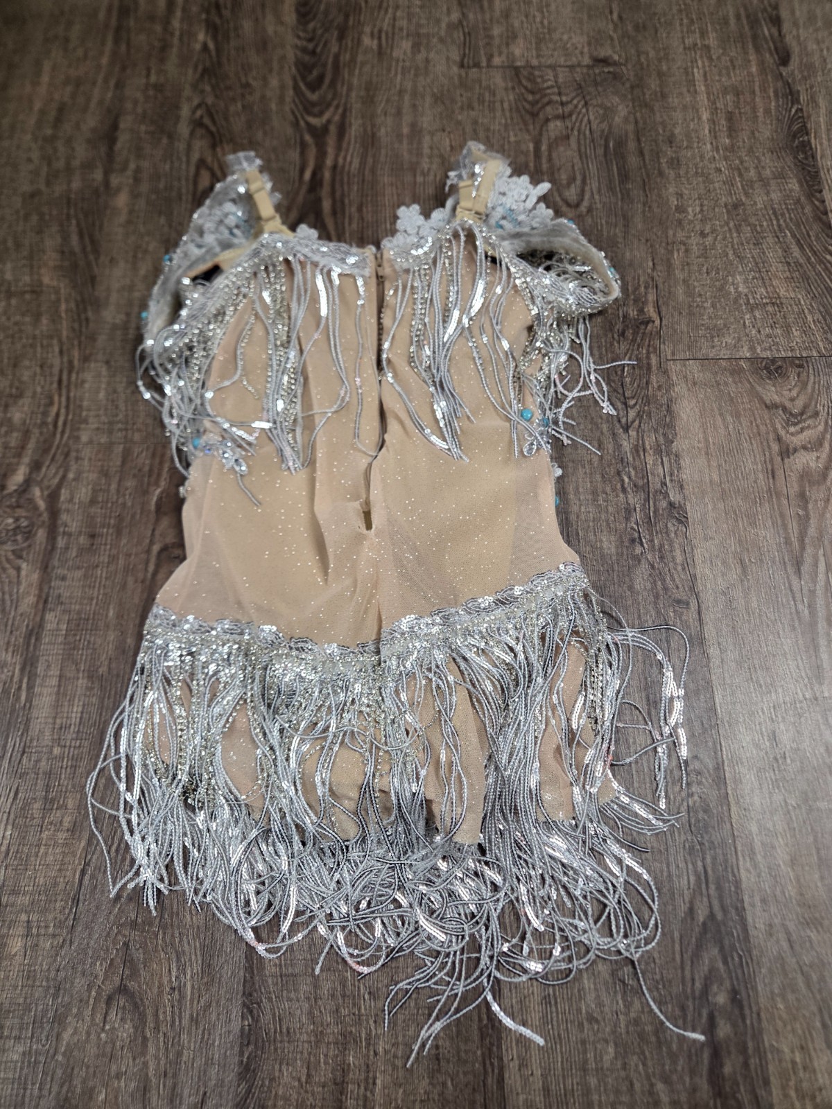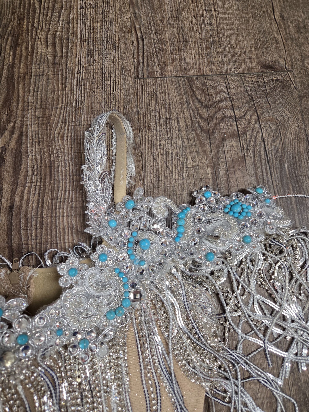 Latin Jazz Fringe Crystals Dress Turquoise Sparkly Performance Majorette Leotard