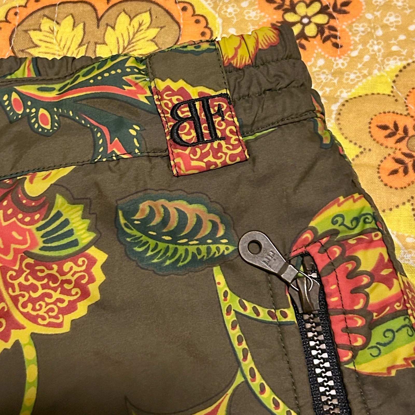 Vintage 80s Ski Snow Pants Floral Green Orange Funky Retro Belfe Womens XS S