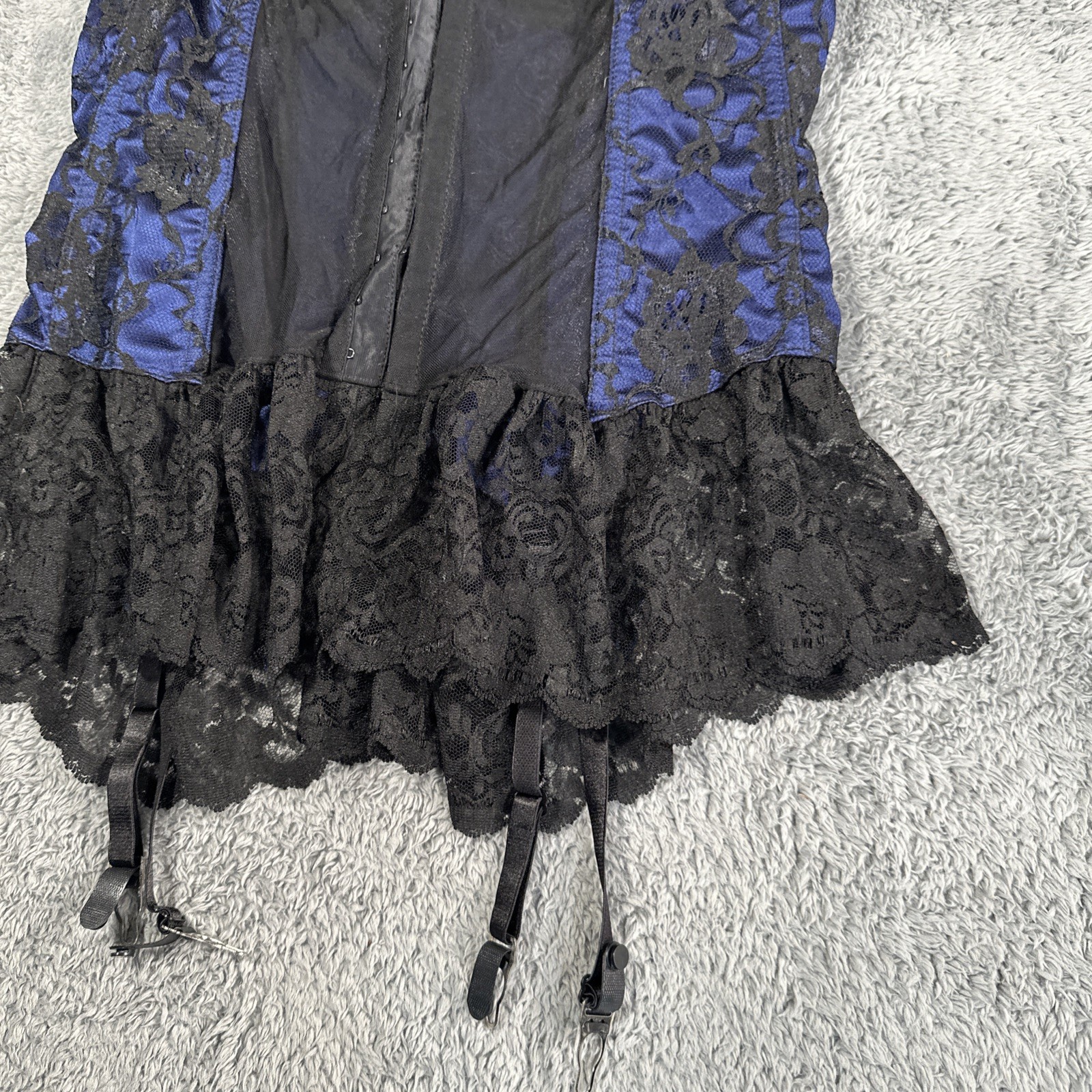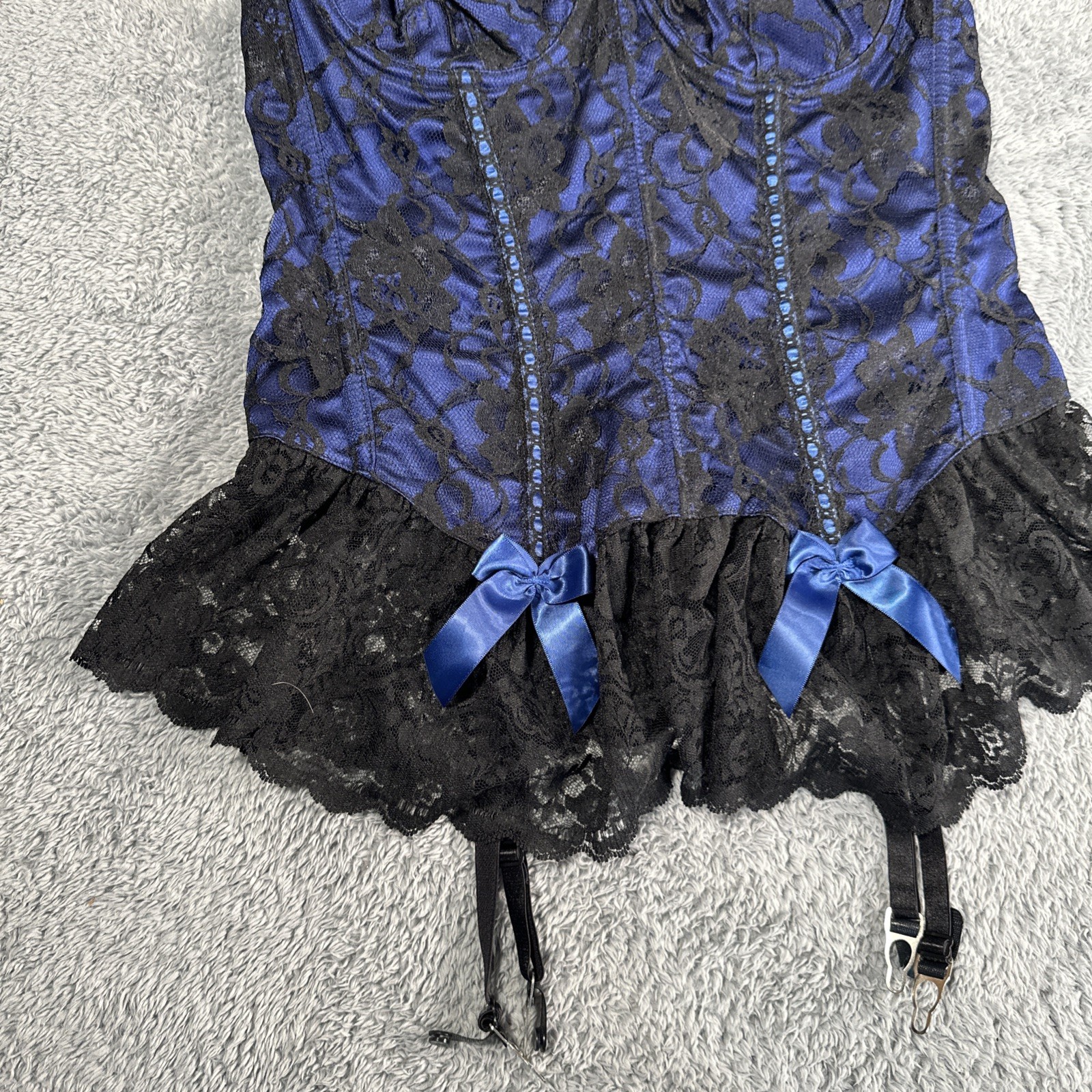 как выглядит 90s VTG FREDERICKS OF HOLLYWOOD Blue Lace Bustier GARTERS Corset Top 80s 38 фото
