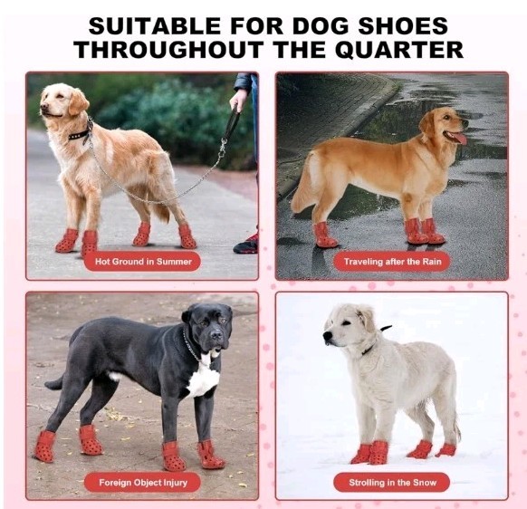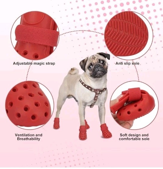 как выглядит Dog Shoes Non-Slip Waterproof Sandals Breathable Perforated Boots Red, Size 4: фото