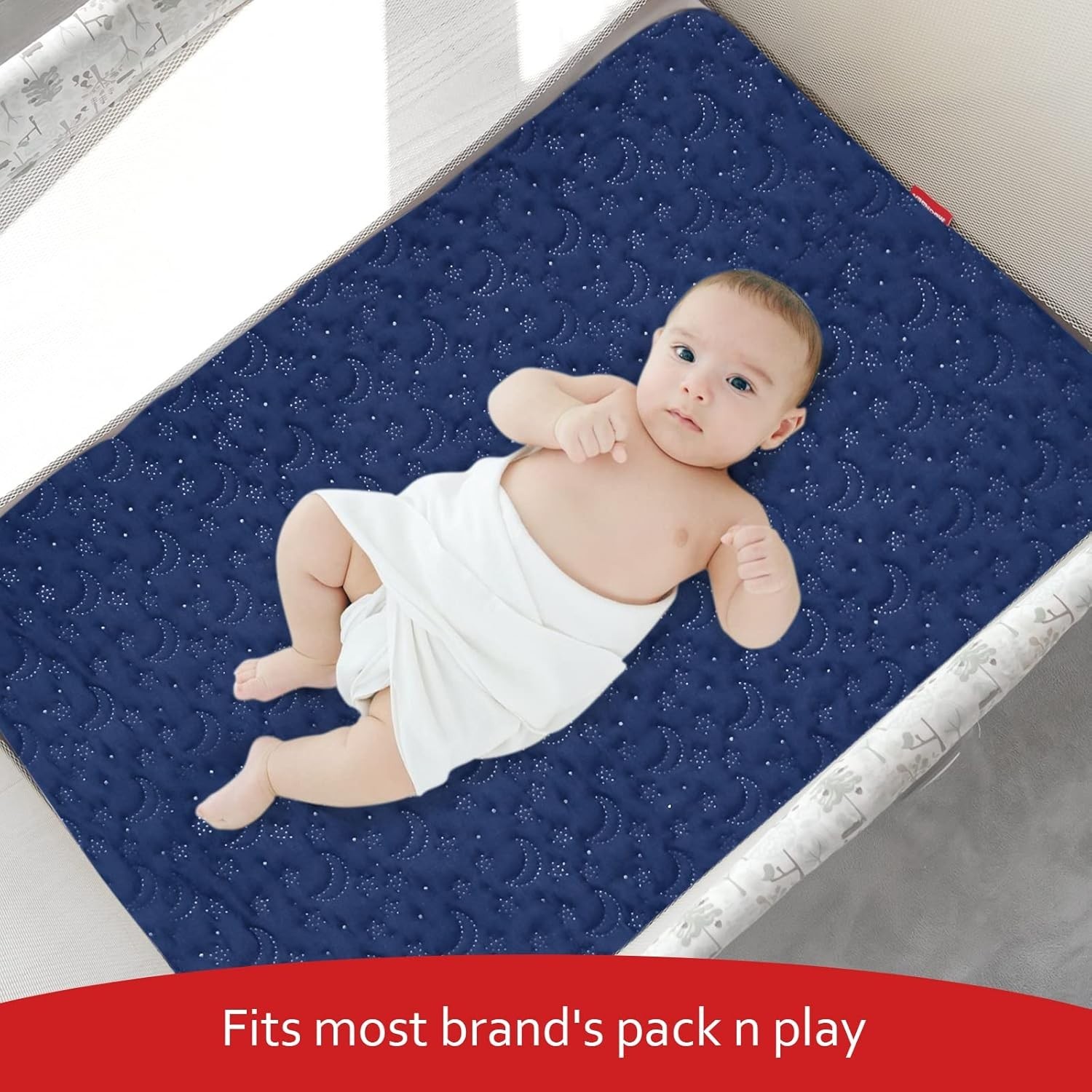 Waterproof Pack and Play Mattress Cover 2 Pack, Soft Quilted Pack and Play Ma...