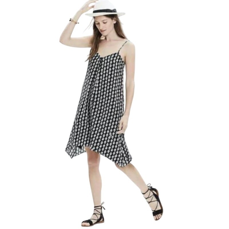 Madewell Bloomstamp V-Neck Silk Trapeze Cami Dress XS NWOT