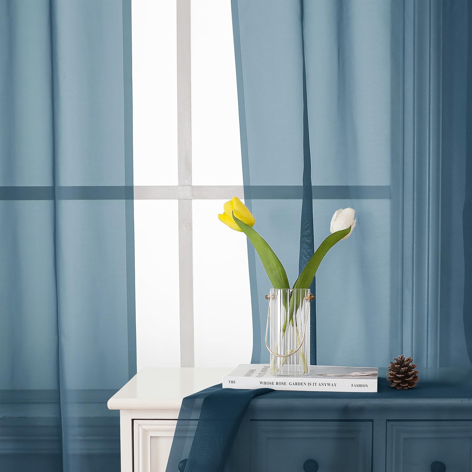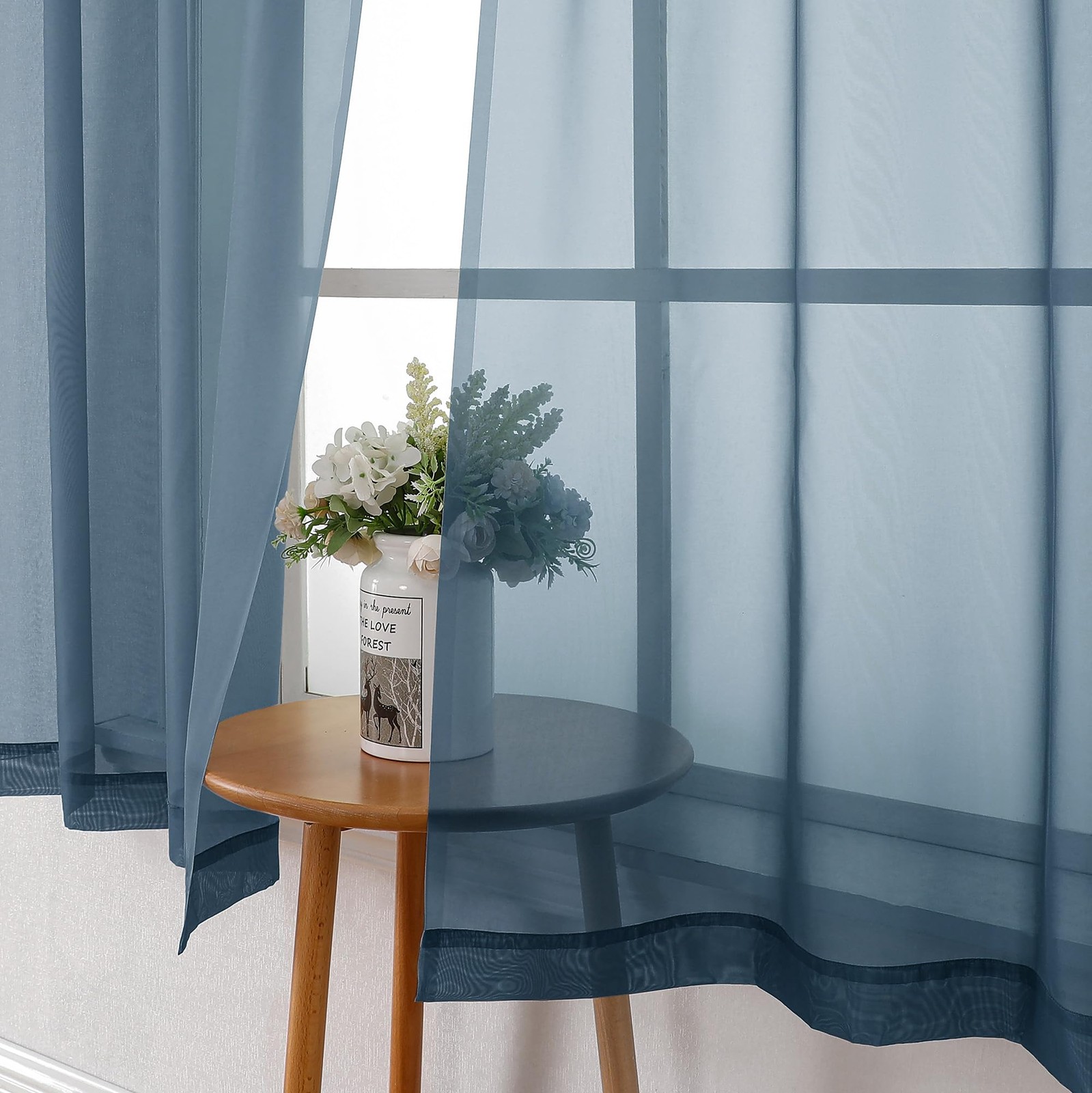 как выглядит Lecloud Dusty Blue Sheer Curtains 63 Inch Length 2 40 W x 63 L, фото