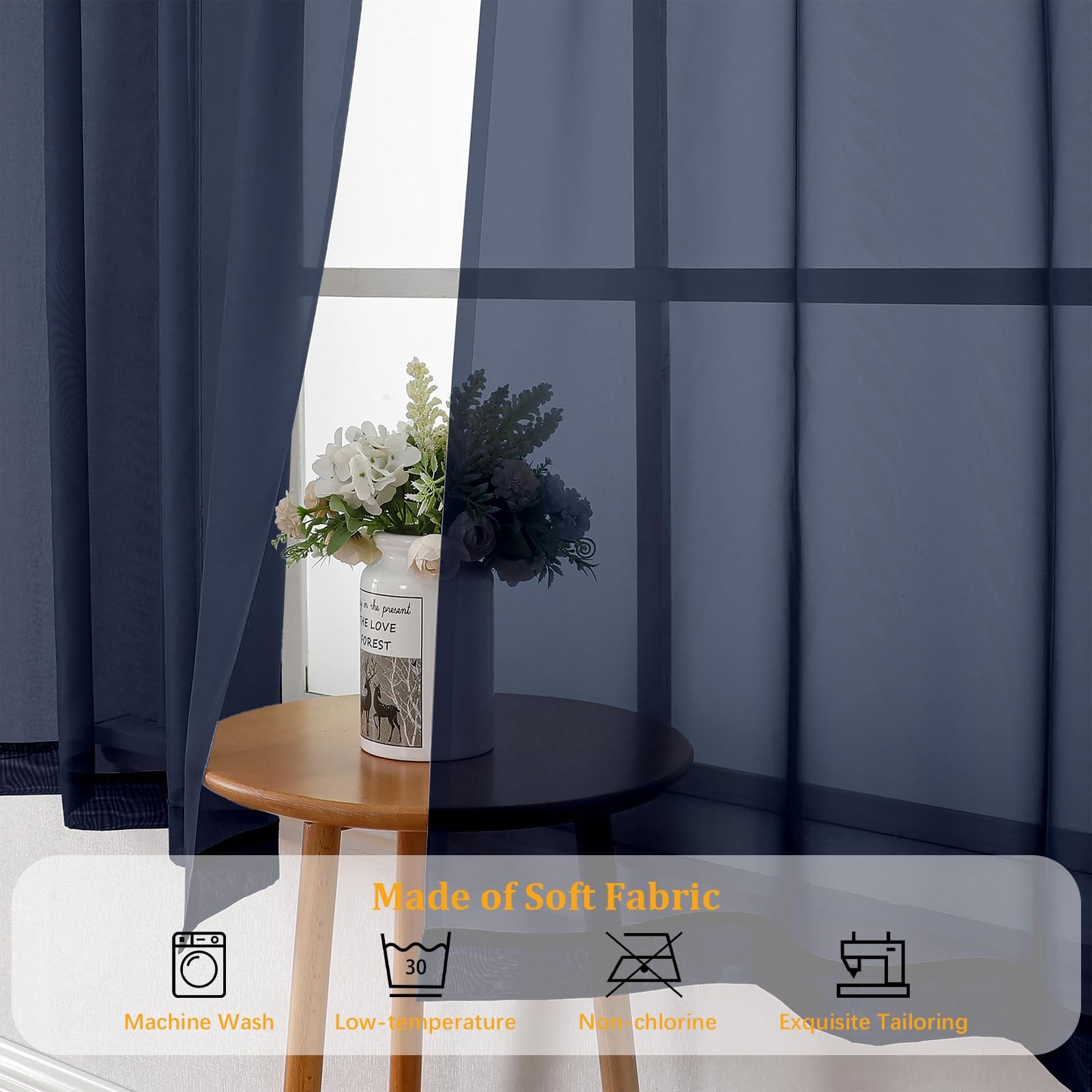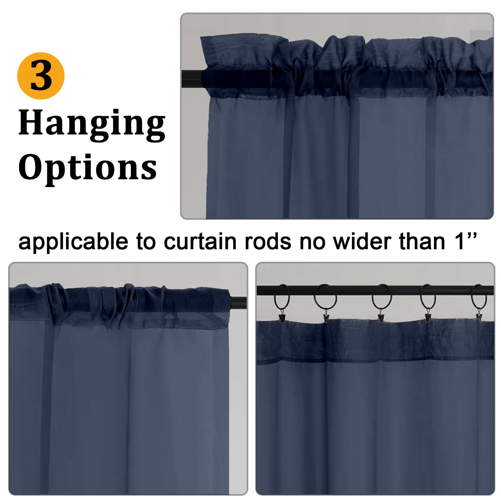 Gwine Navy Blue Sheer Kitchen Curtains 36 42W x 36L Pack of 2 ,