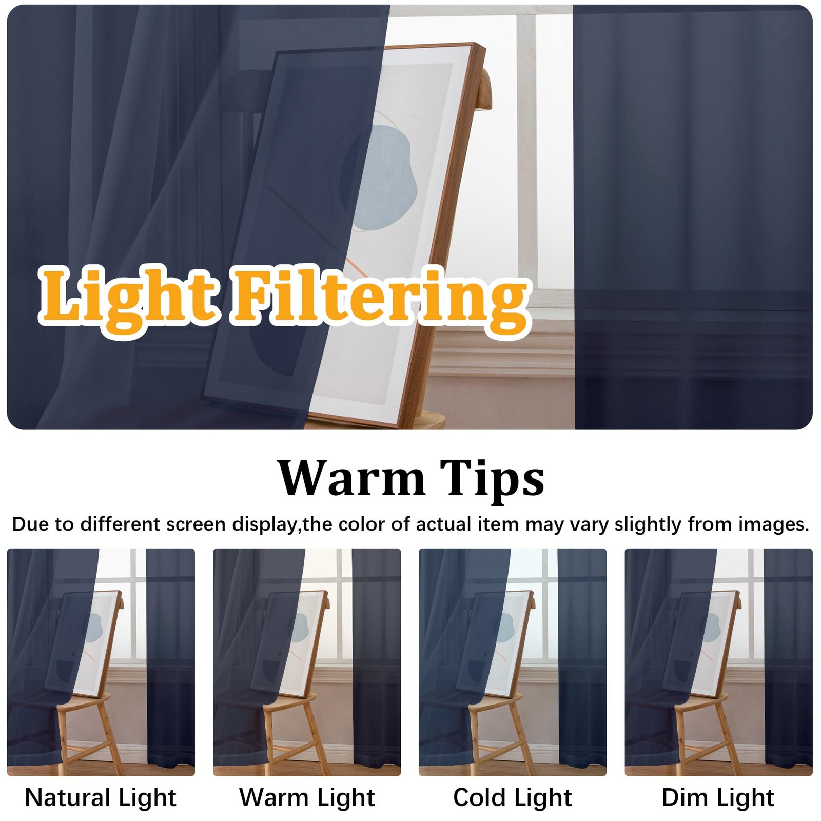 как выглядит Gwine Navy Blue Sheer Kitchen Curtains 36 42"W x 36"L Pack of 2 , фото