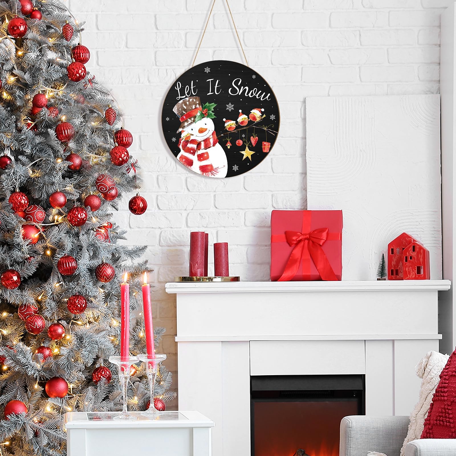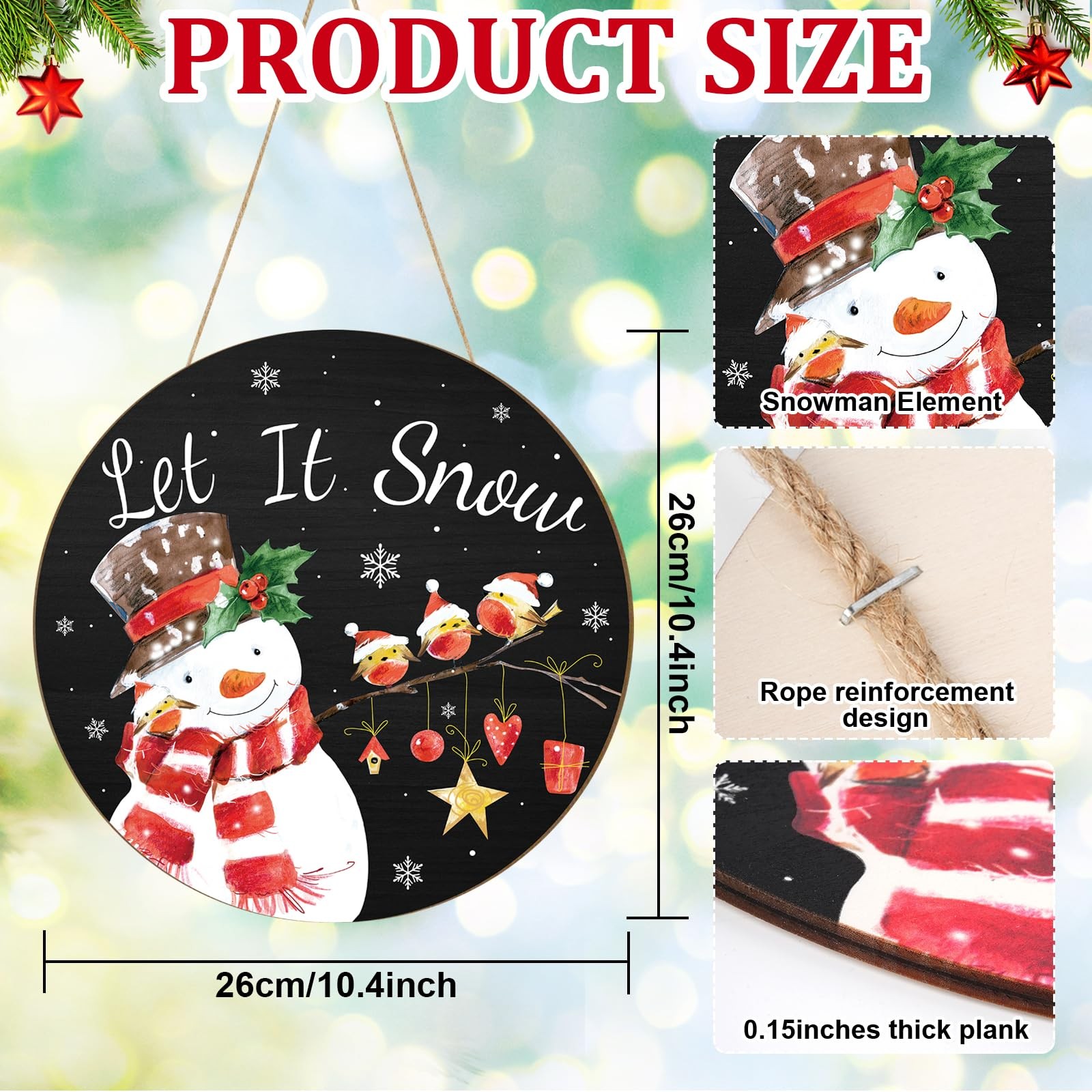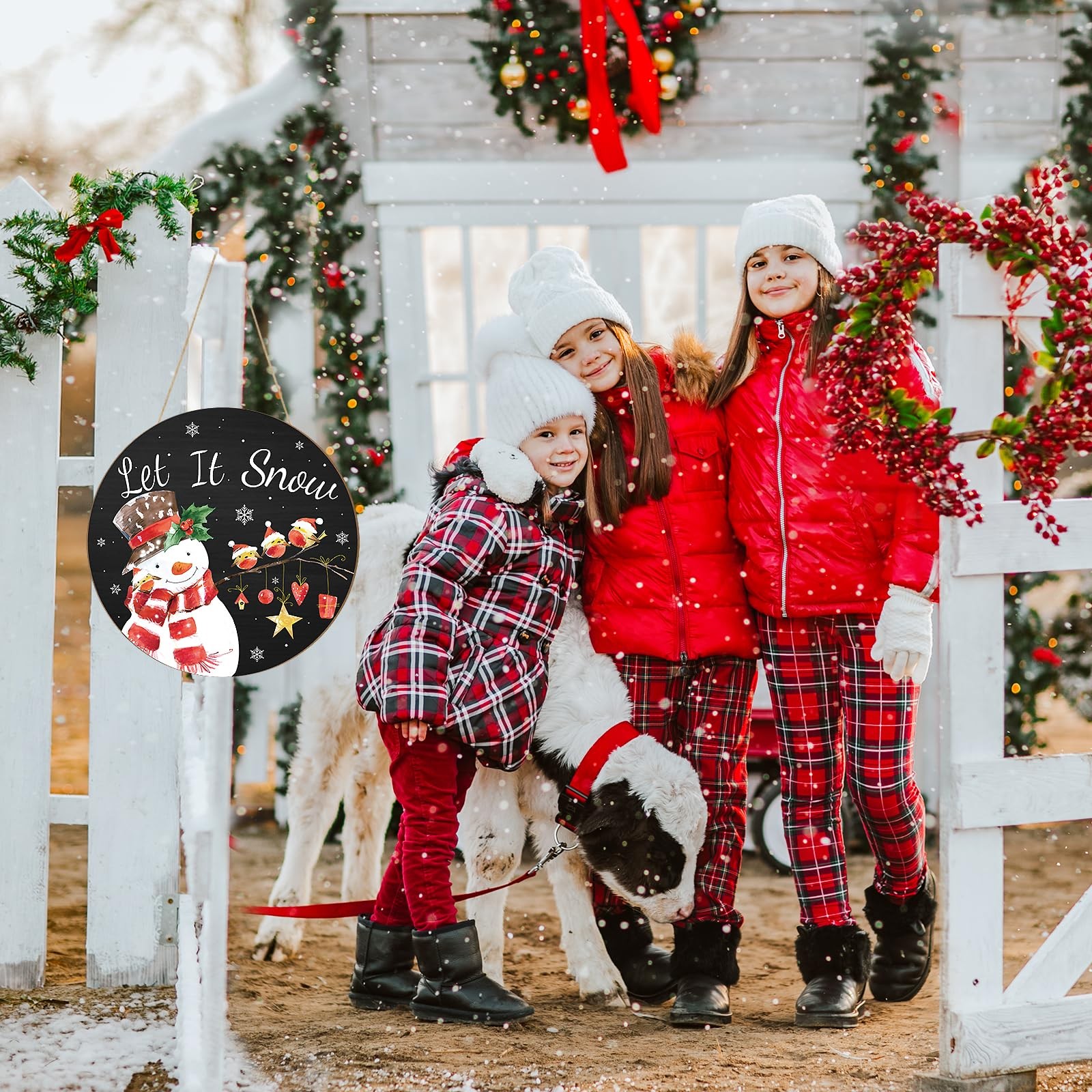 • Wooden Christmas Door Wreath for Front Sign Snowman Wall Large, Red