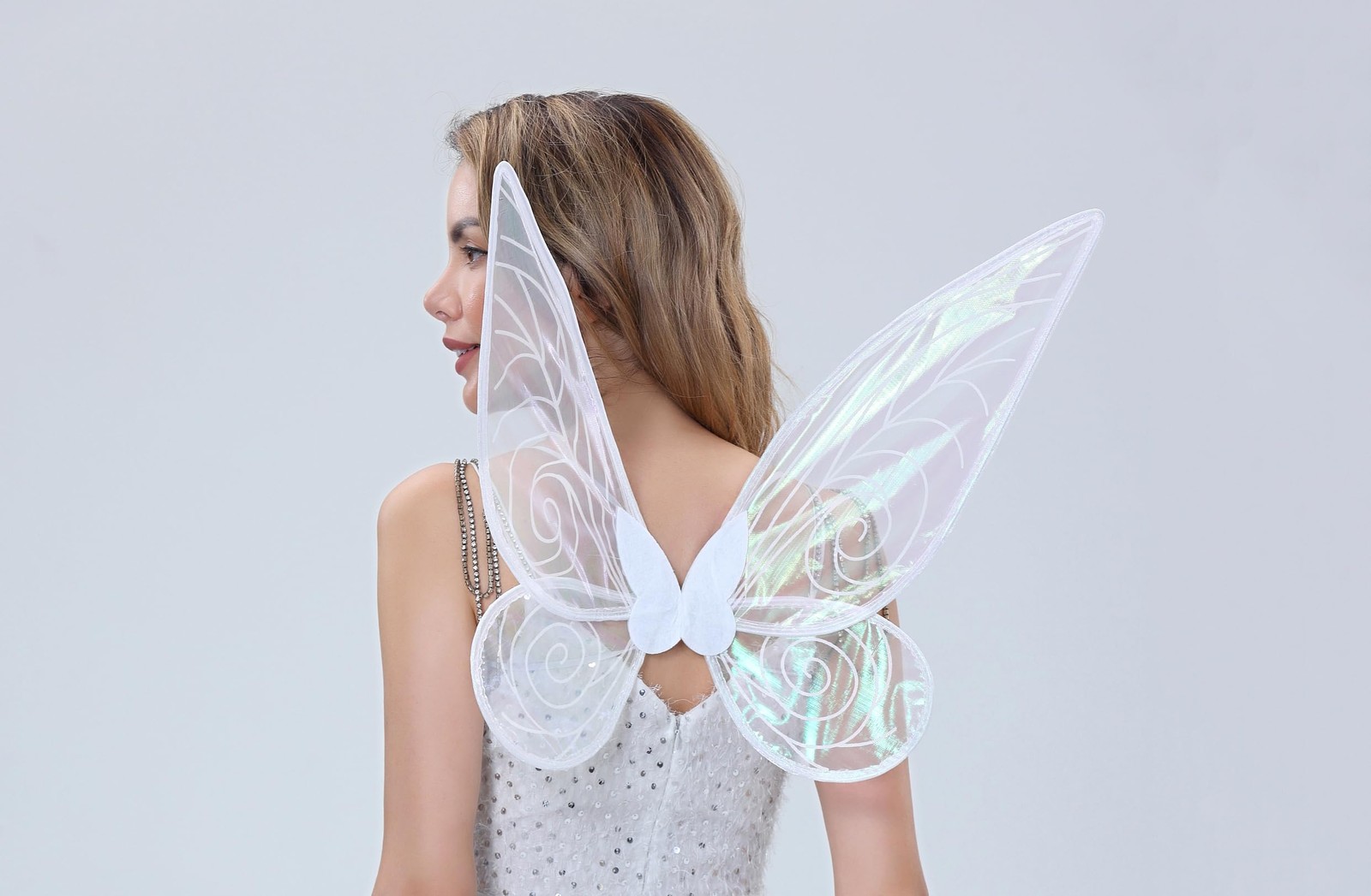 ZEXILILA Adult Fairy Wings, Shiny Transparent Princess Large, White