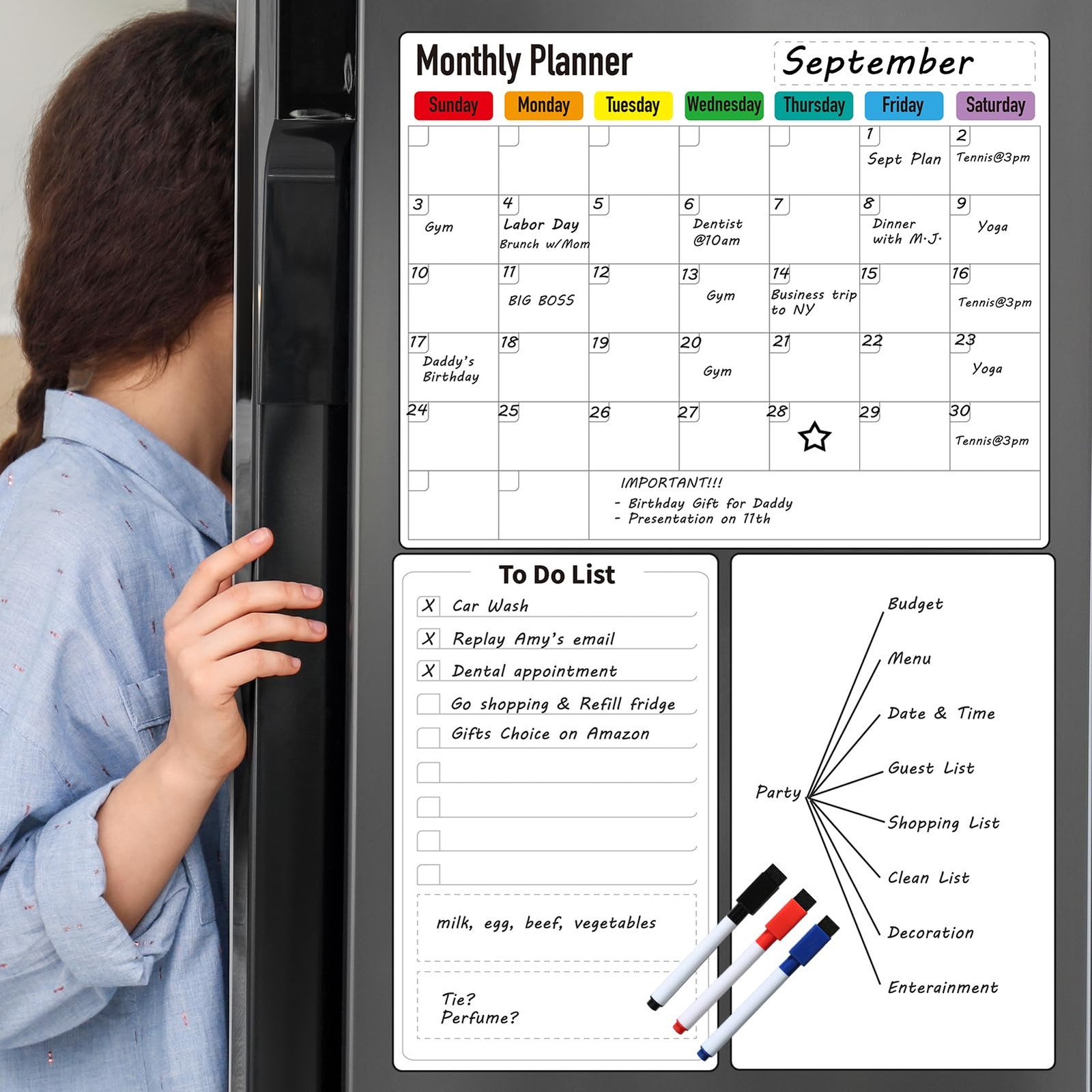 Magnetic Dry Erase Planner for 14.6 x 11.6 , 7.3 x 11.6, Multicolor