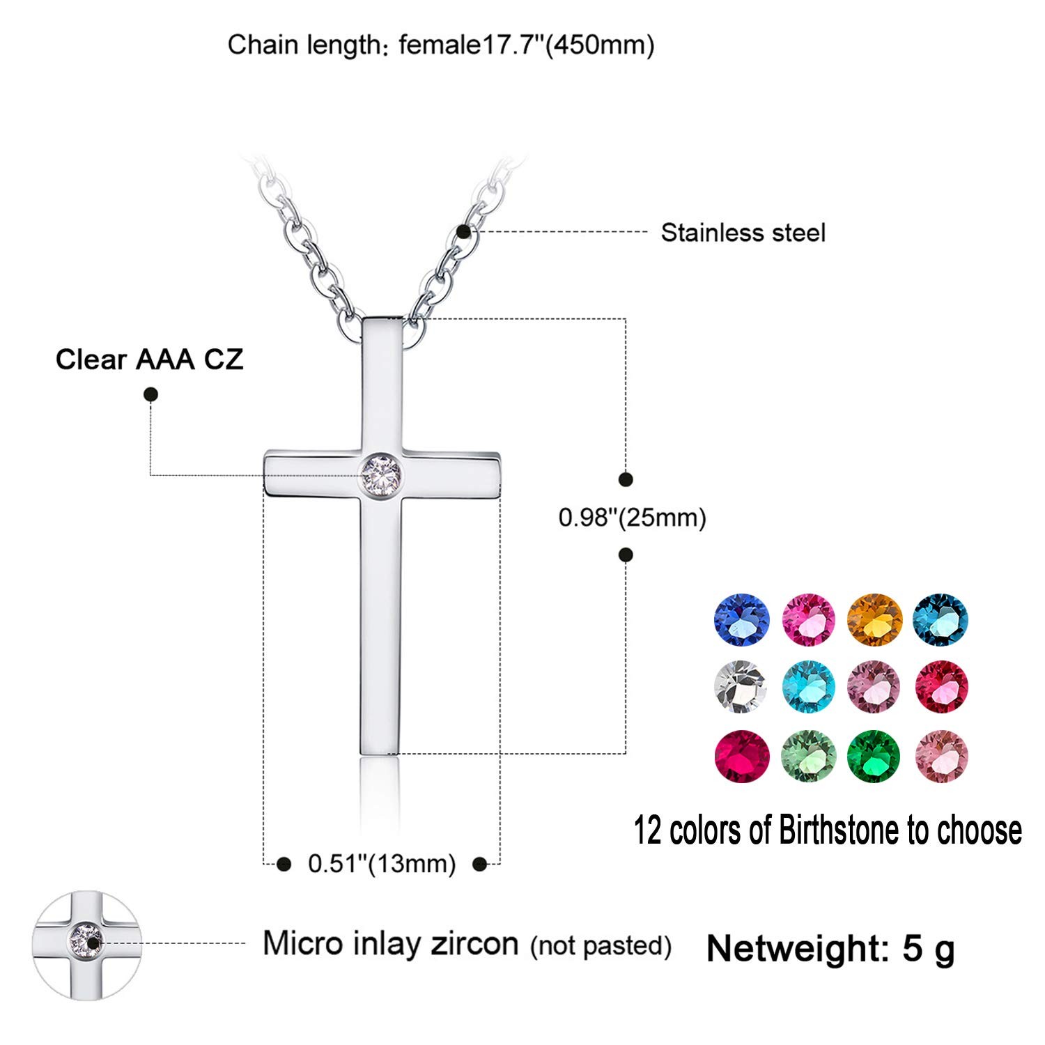 XOYOYZU Birthstone Small Cross Pendant Necklace for Women with AAAAA October
