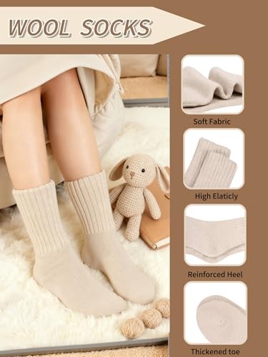 Womens Wool Socks Warm Winter Thick Thermal Hiking Black/Beige/Dark Grey
