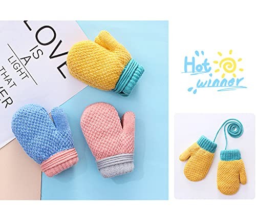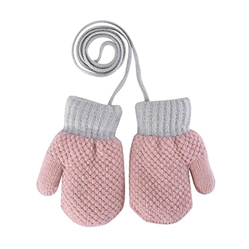 Toddler Winter Warm Mittens Baby Soft Plush Gloves Knit Fleece Lined Ski Pink