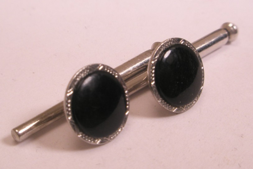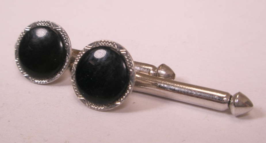 SINGLES 2 5/16 Black Round Vintage SWANK Formal Tuxedo Prom Shirt Stud j109