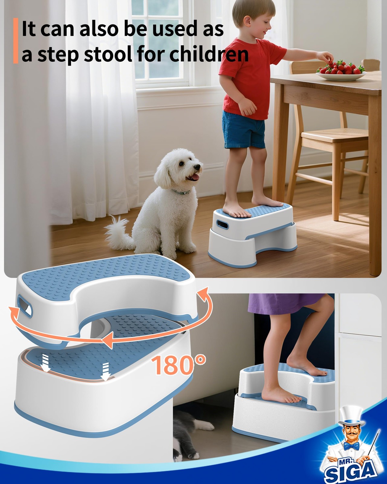 MR.SIGA Toilet Stool Squat for Adults, Heavy Duty Anti-Slip Bathroom Aid