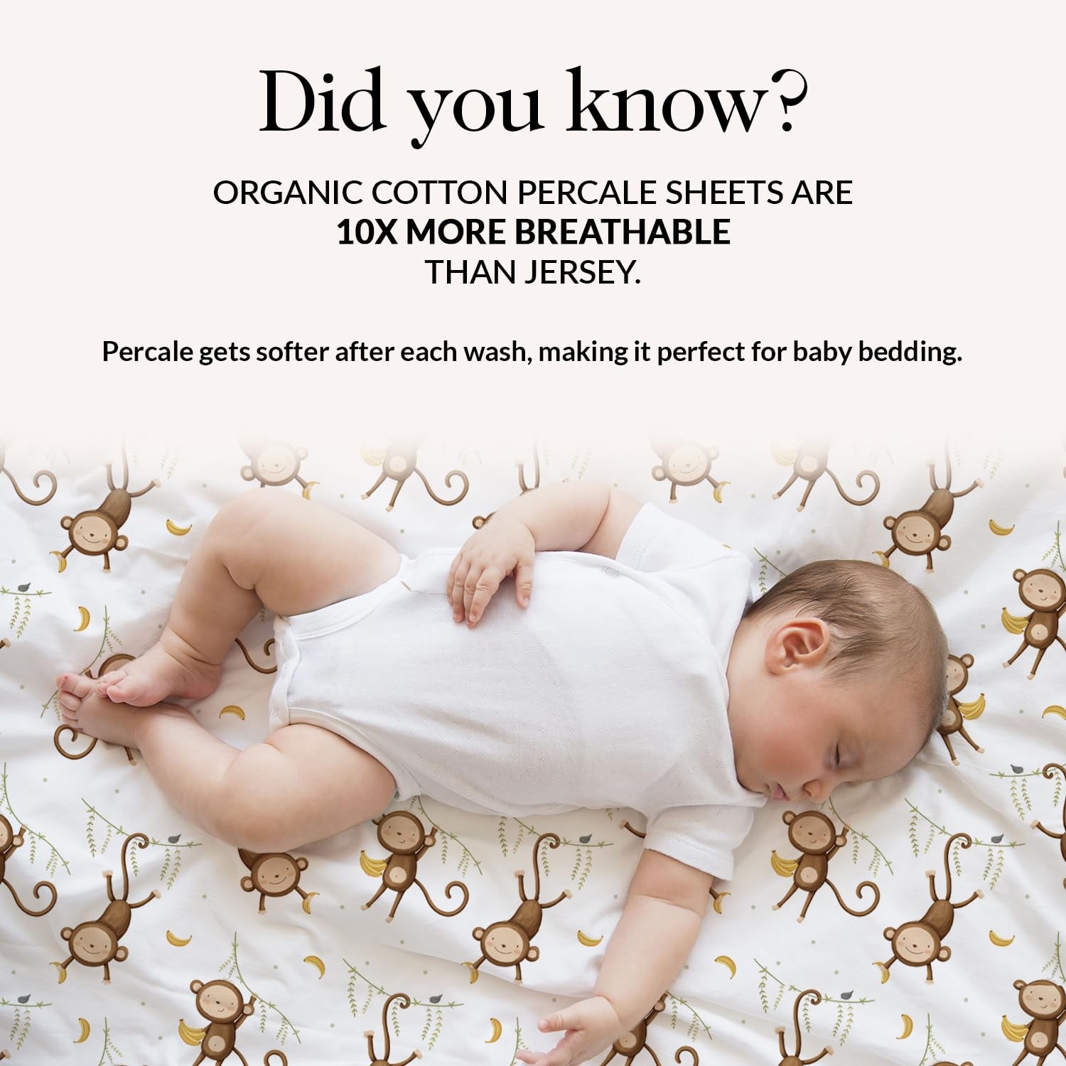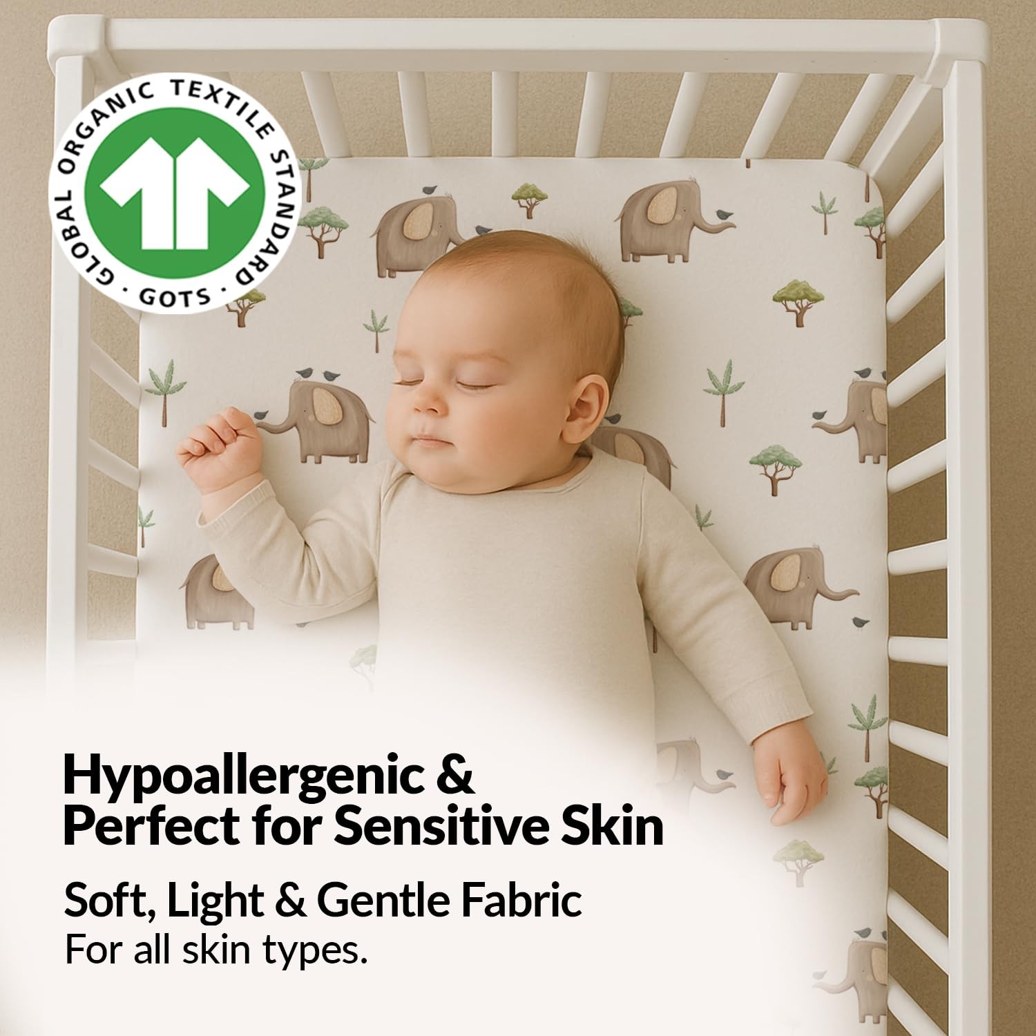 Organic Cotton Crib Sheets 3-Pack - GOTS Certified, Breathable, Double-Elastic,