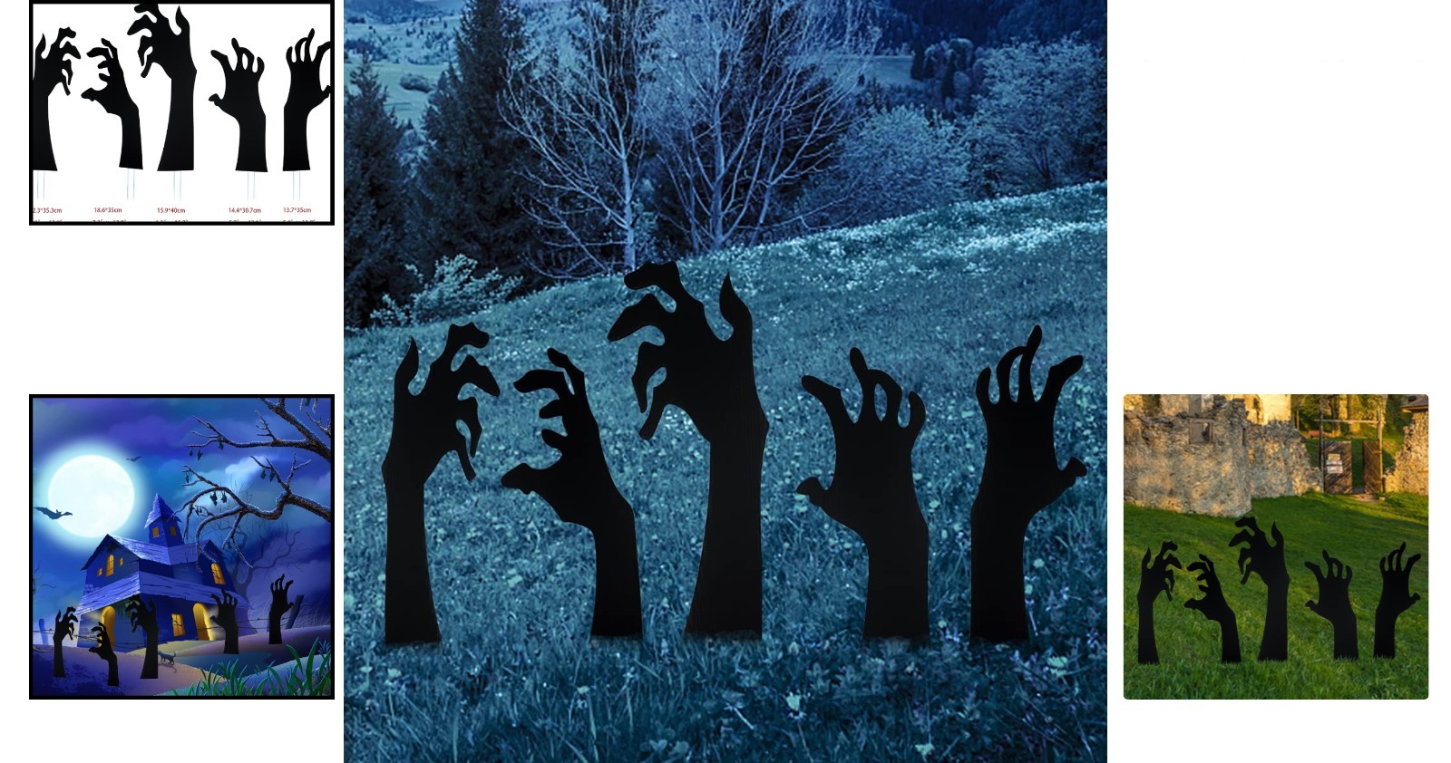 • 5 Pack Black Hand Yard Signs - Scary Outdoor Halloween Decor Set with Stakes