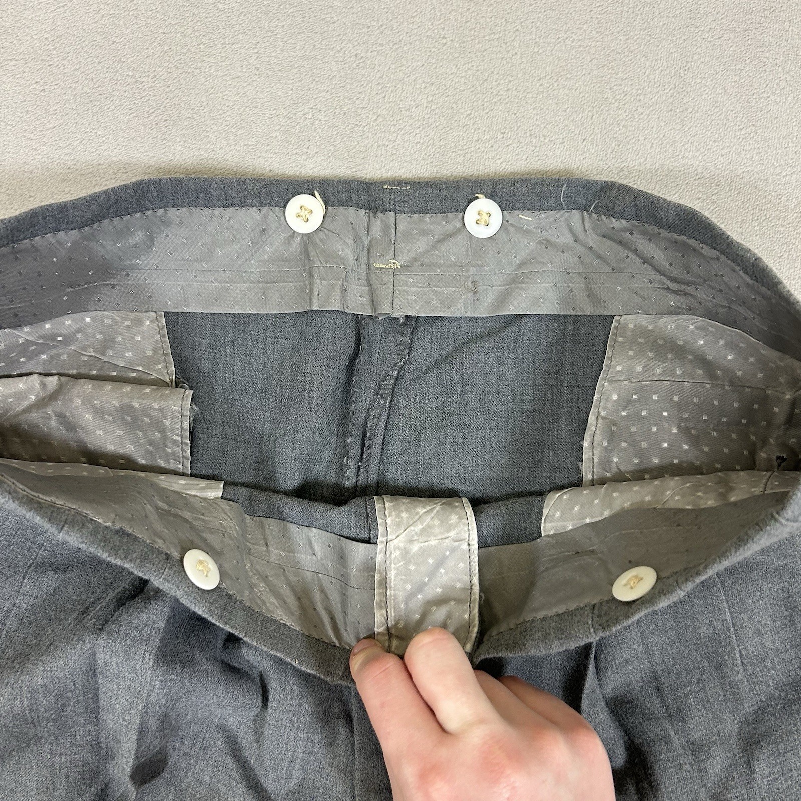 Vtg 40s 50s Drop Loop Pleated Slacks Pants Mens 36x31 Rockabilly Gray Wool Gab