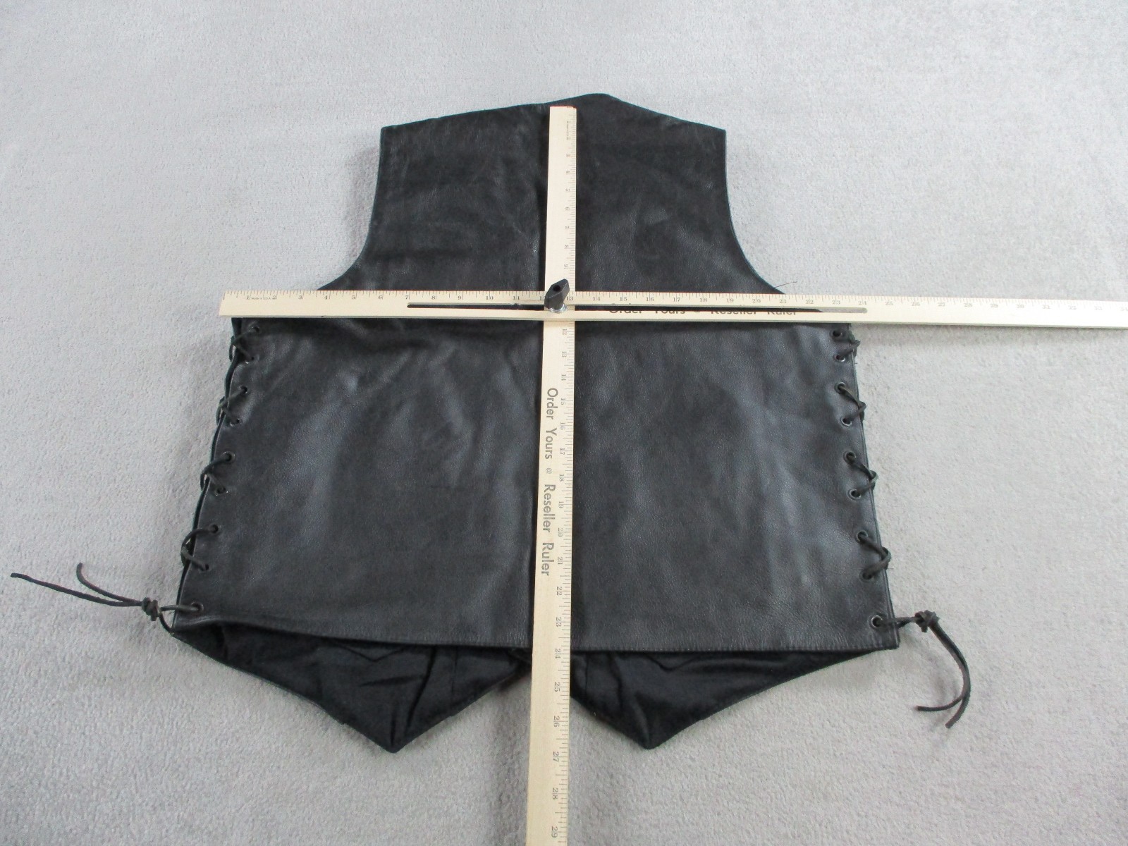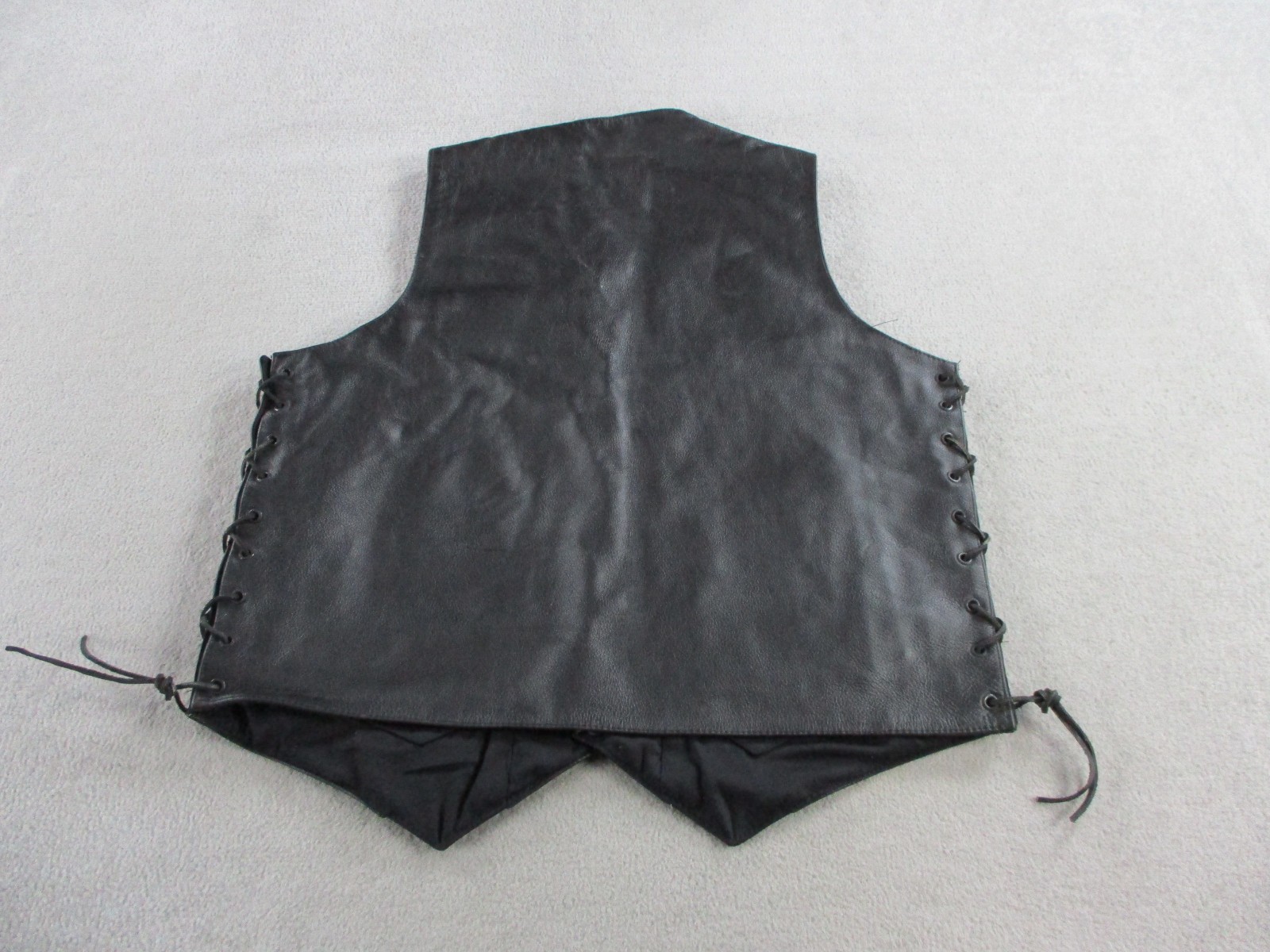 как выглядит Leather Motorcycle Vest Men Large Black Biker Riding Button Front Tassle Vintage фото
